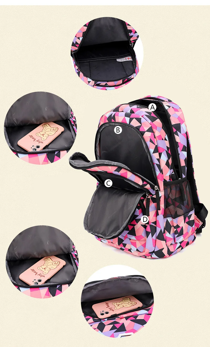 Primary Girl School Backpacks Set 3Pcs Middle Student Schoolbag Lunchbox Coin Bag Large Capacity Combination Children School Bag