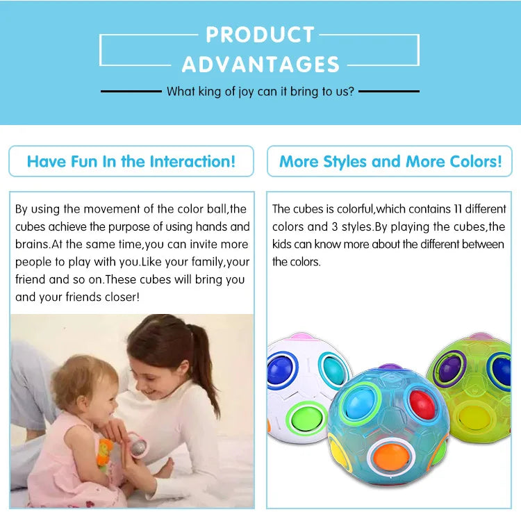 Rainbow Ball Puzzle Magic Cube Football Fidget Toy Luminous 3D Brain Teasers Anti Stress Relief Educational Game for Kids Adults
