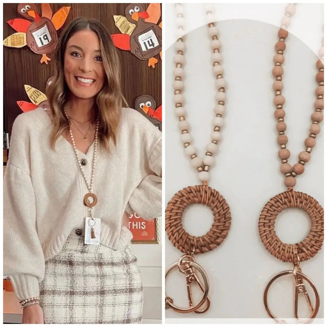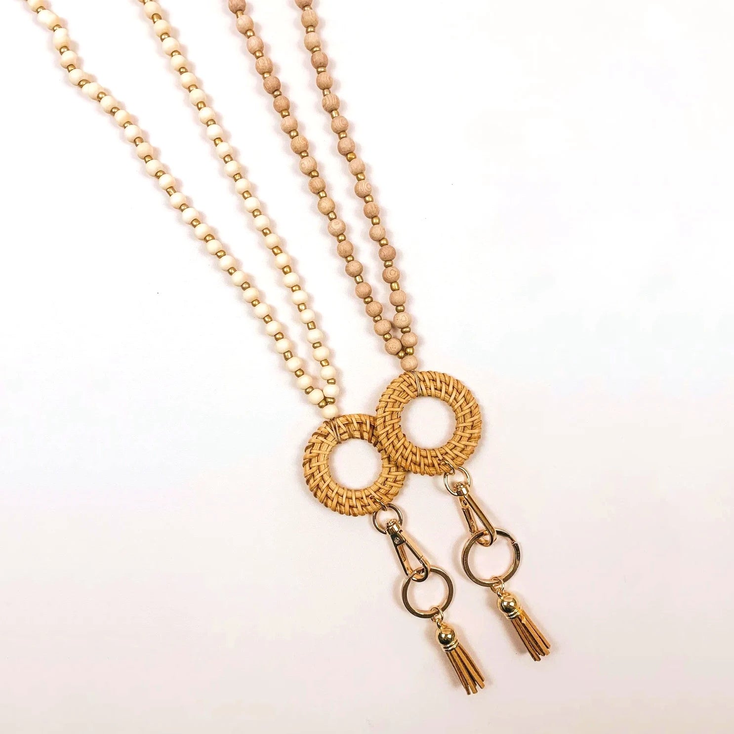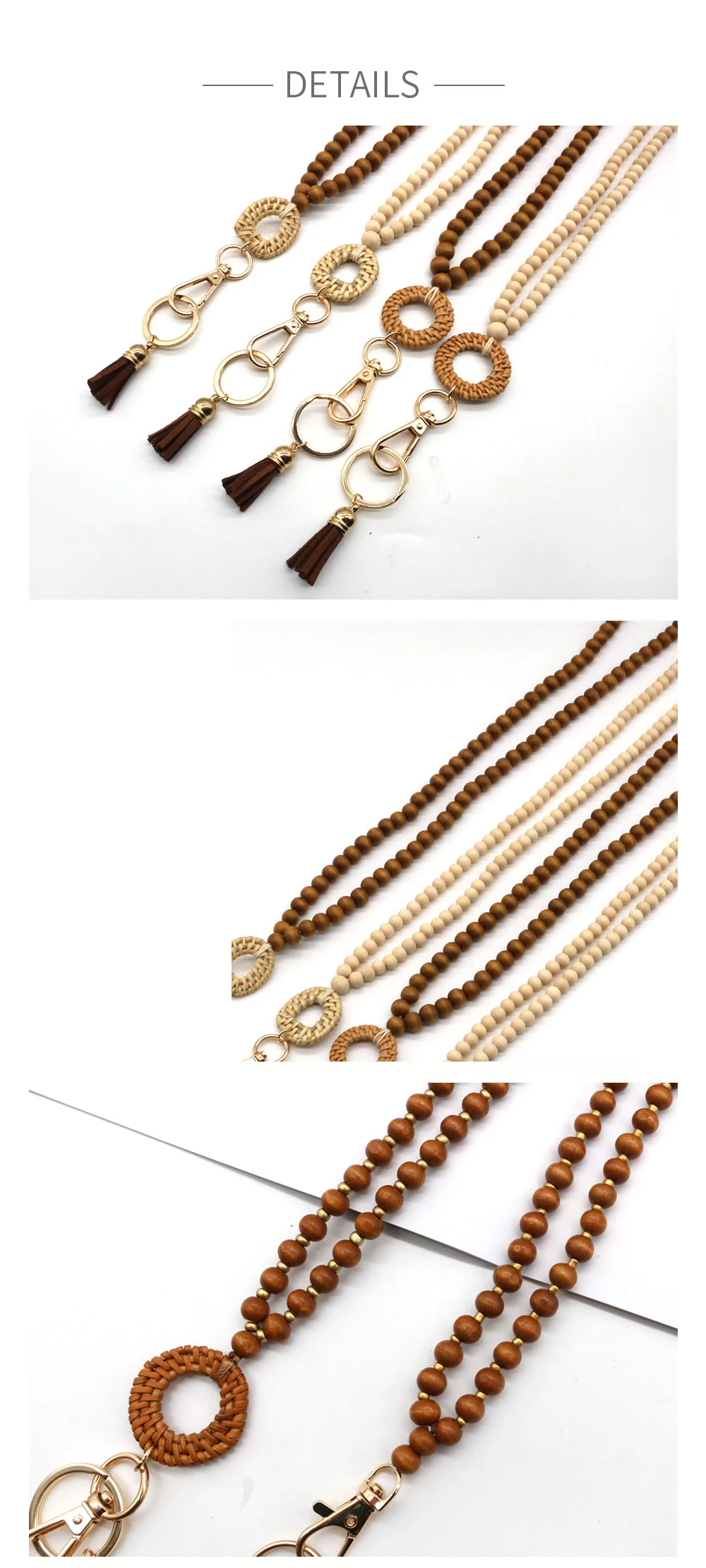 Rattan Wood Bead Lanyard Keychain Work ID Badge Necklace Boho Strap Nurse Teacher Gift Beaded Lanyard Charm Breakaway Clasp