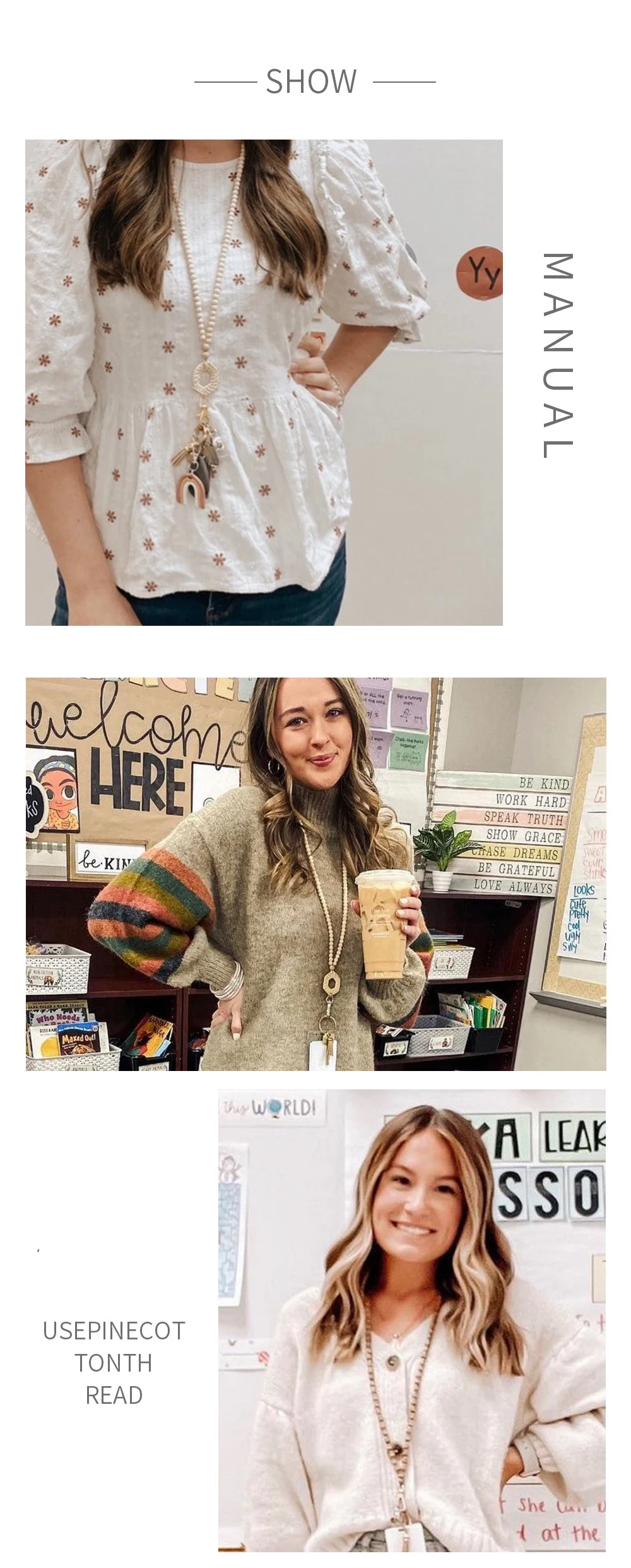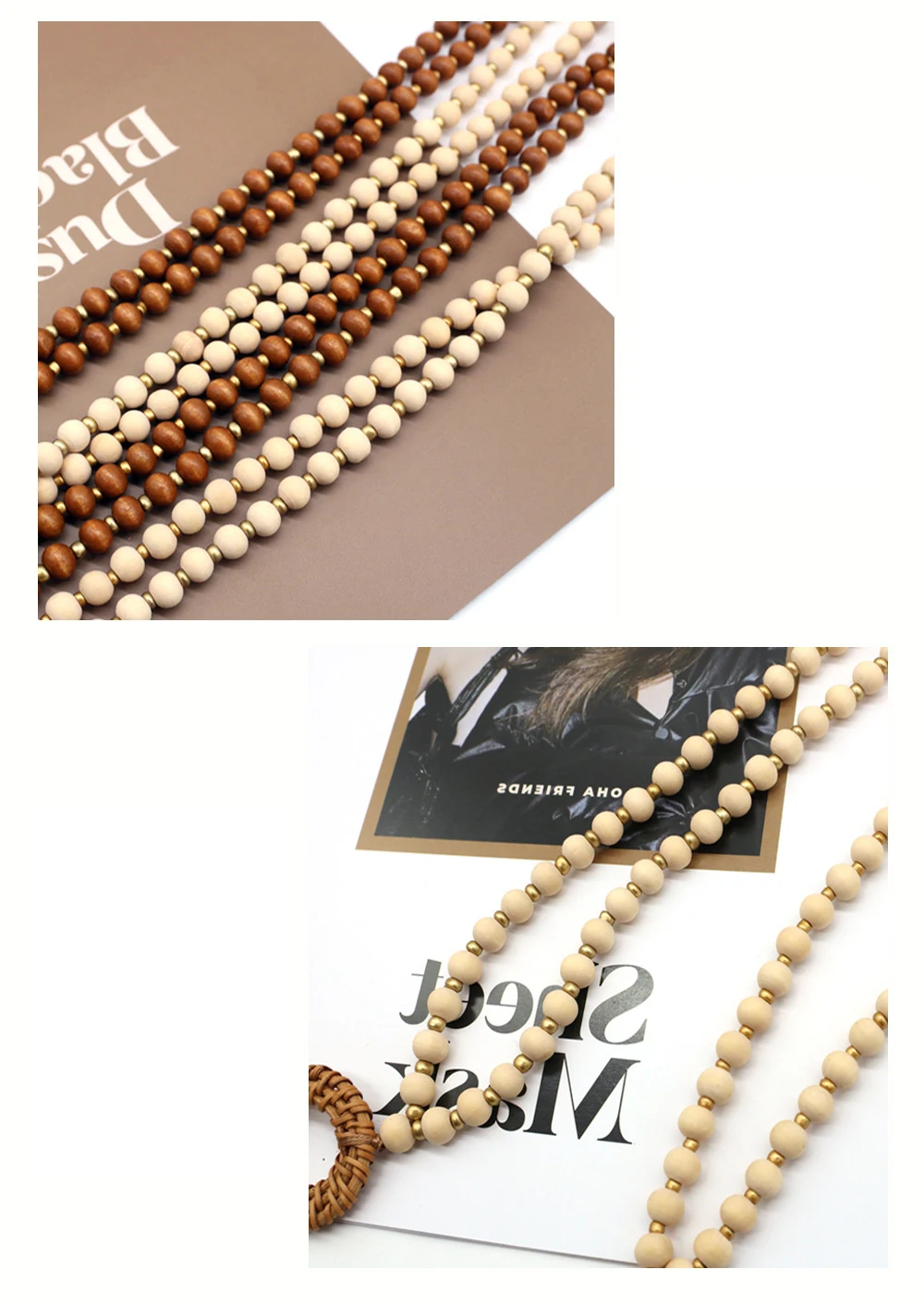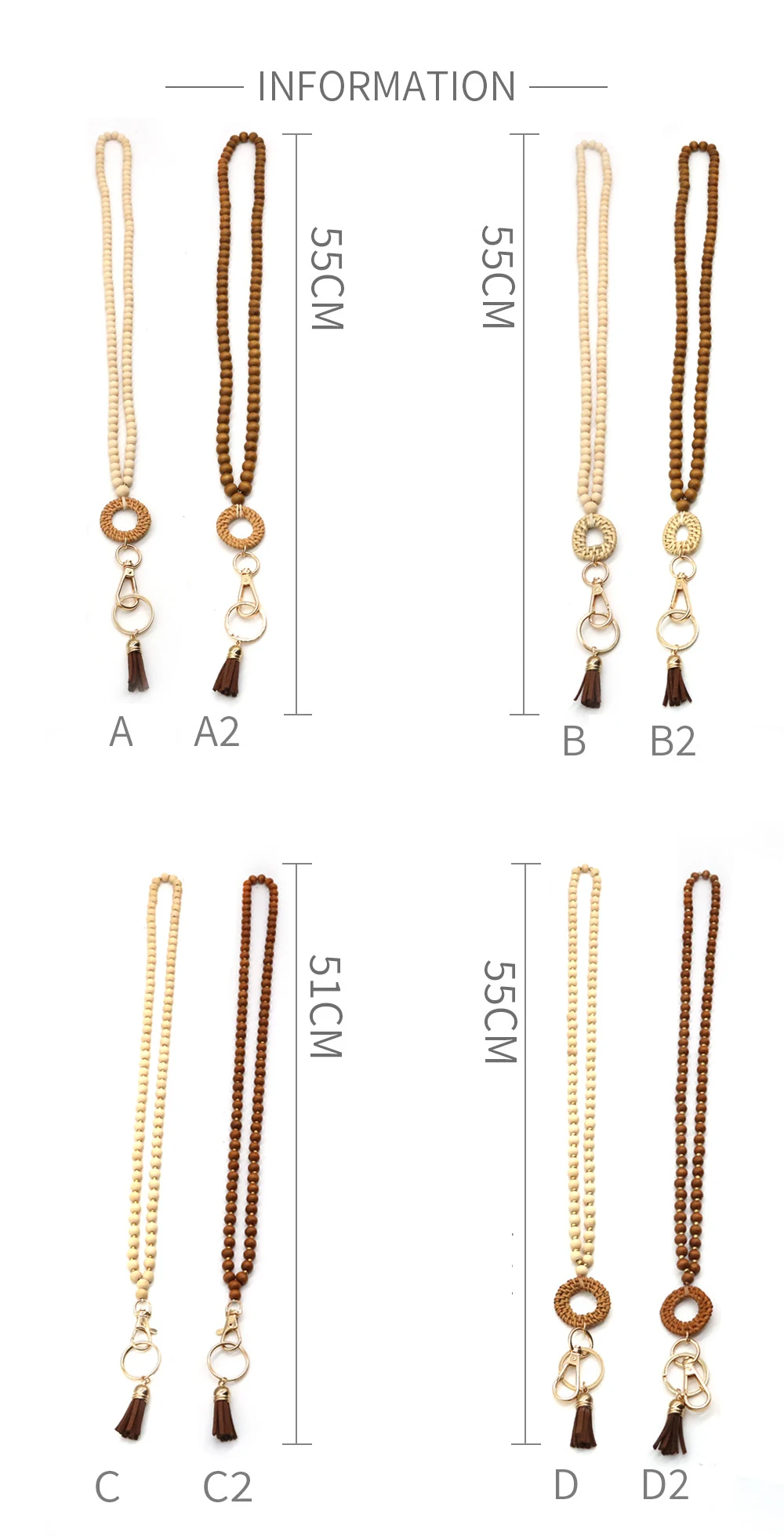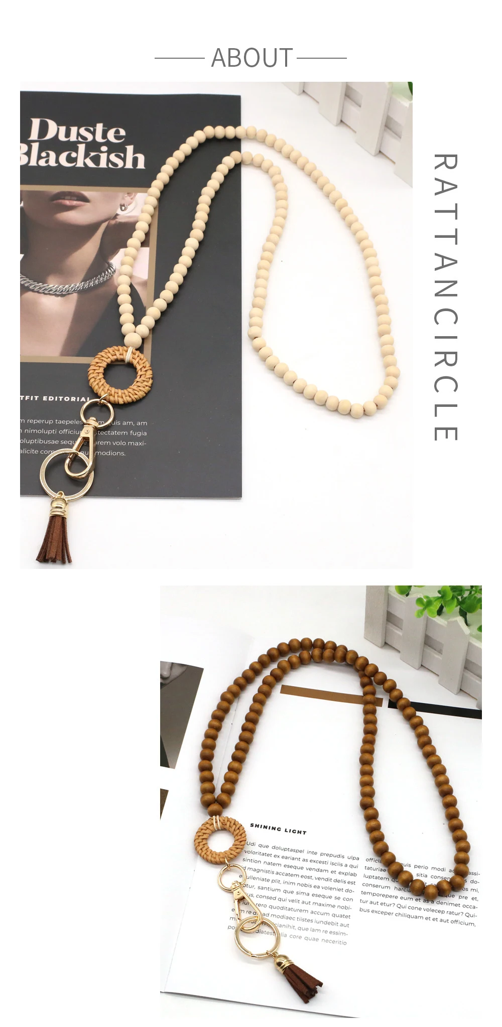 Rattan Wood Bead Lanyard Keychain Work ID Badge Necklace Boho Strap Nurse Teacher Gift Beaded Lanyard Charm Breakaway Clasp