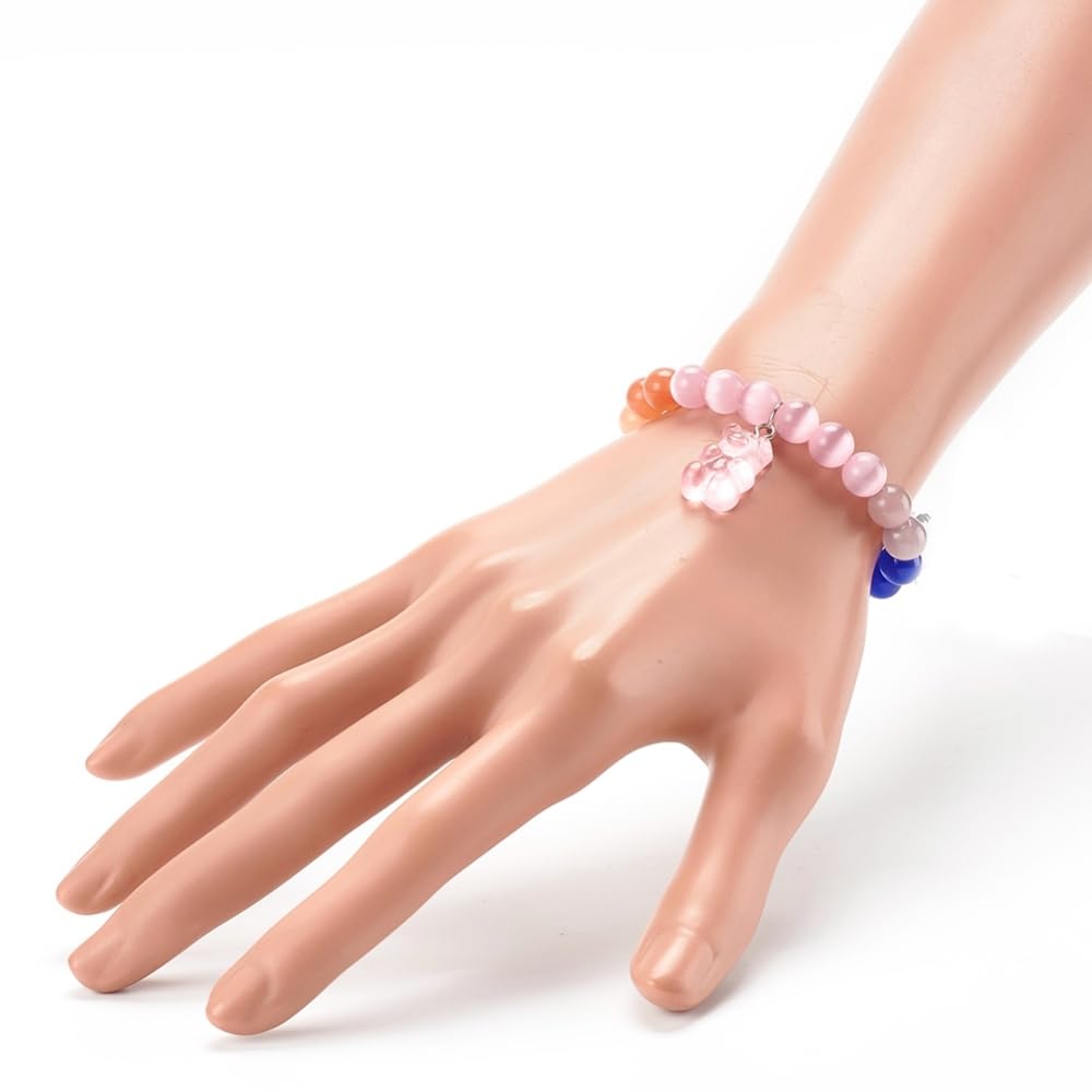 Resin Bear with Mixed Colour Cat eye Beads stretchable bracelet