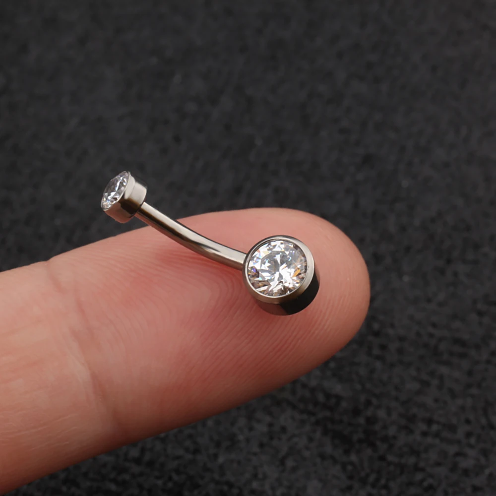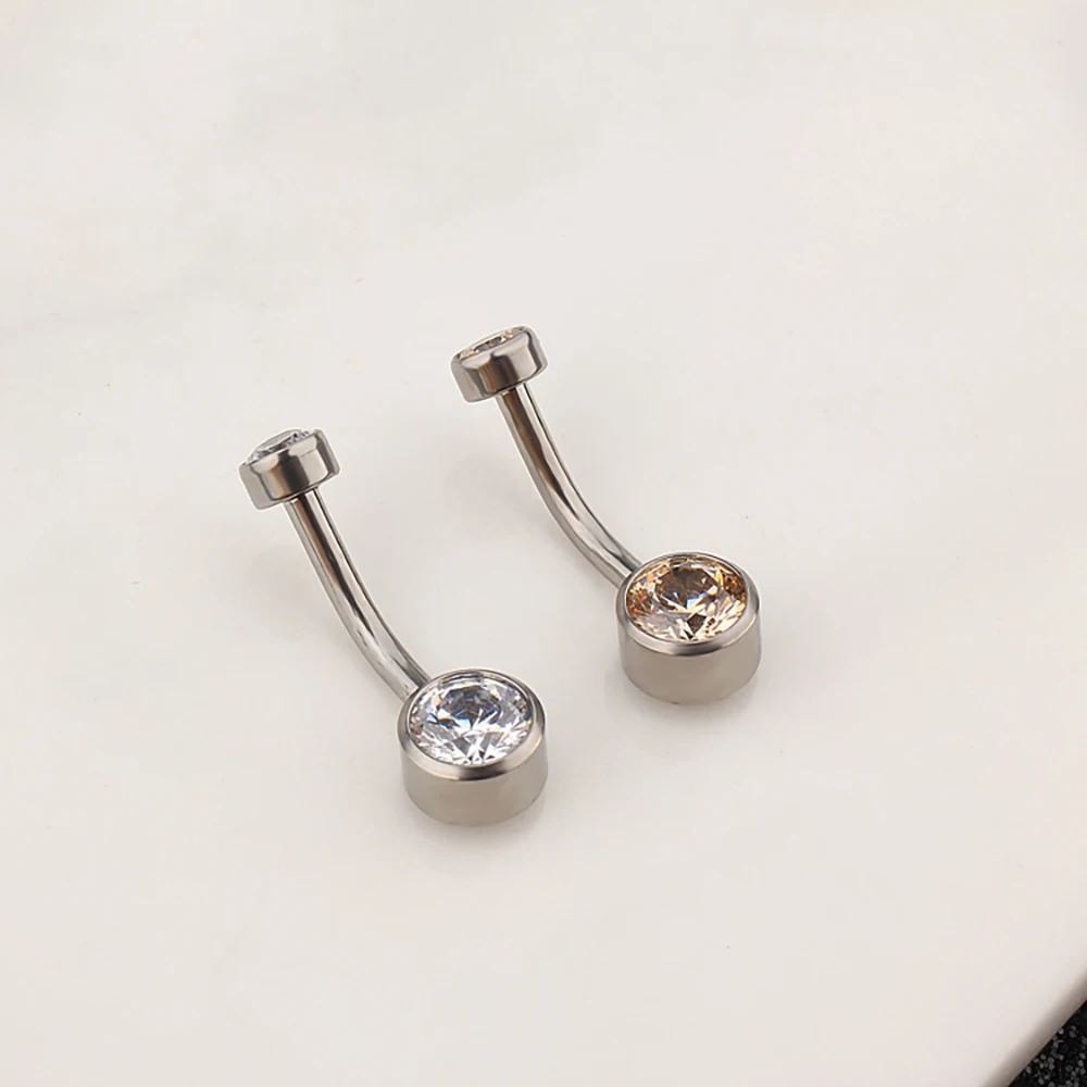 Right Grand ASTM F136 Titanium Belly Button Clear Zircon Bezel Piercing 14G Internally Threaded Navel Ring Body Jewelry