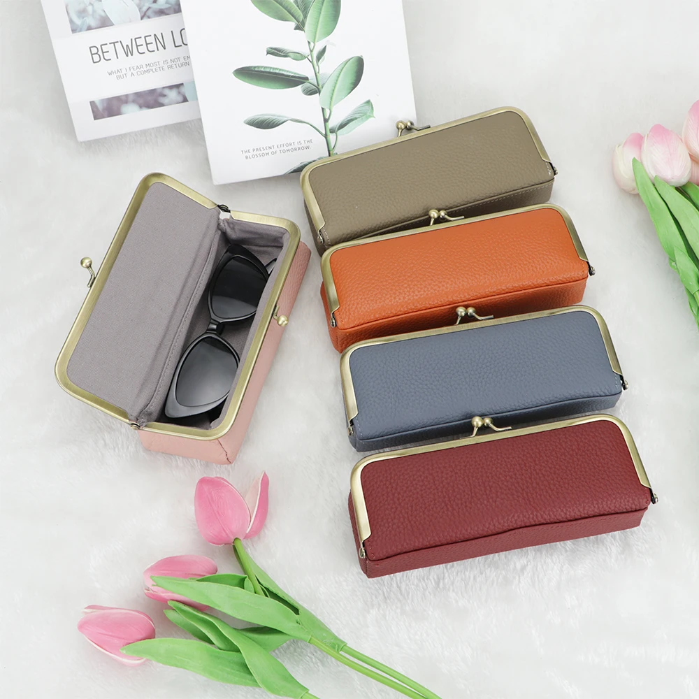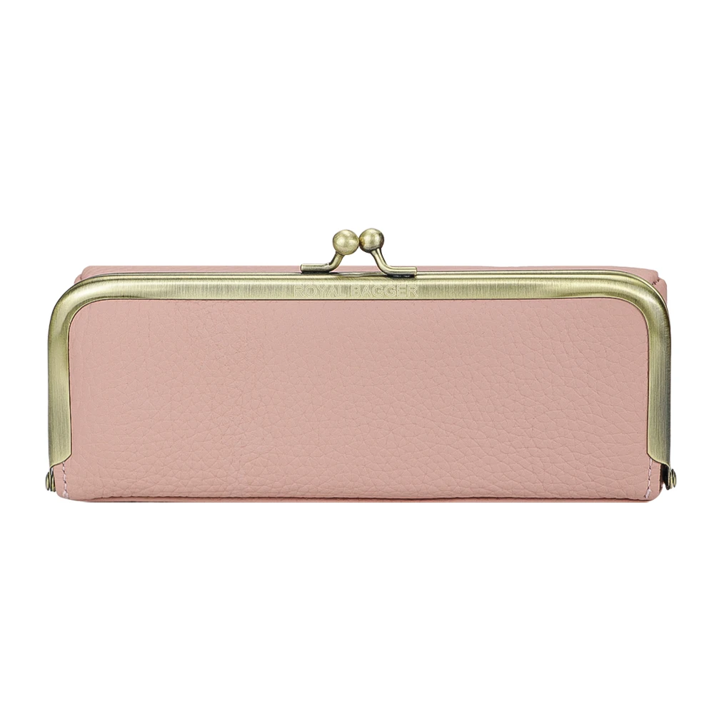 Royal Bagger Genuine Leather Glasses Case, Fashion Pencil Bag with Kiss Lock, Portable Coin Purse for Women 1840