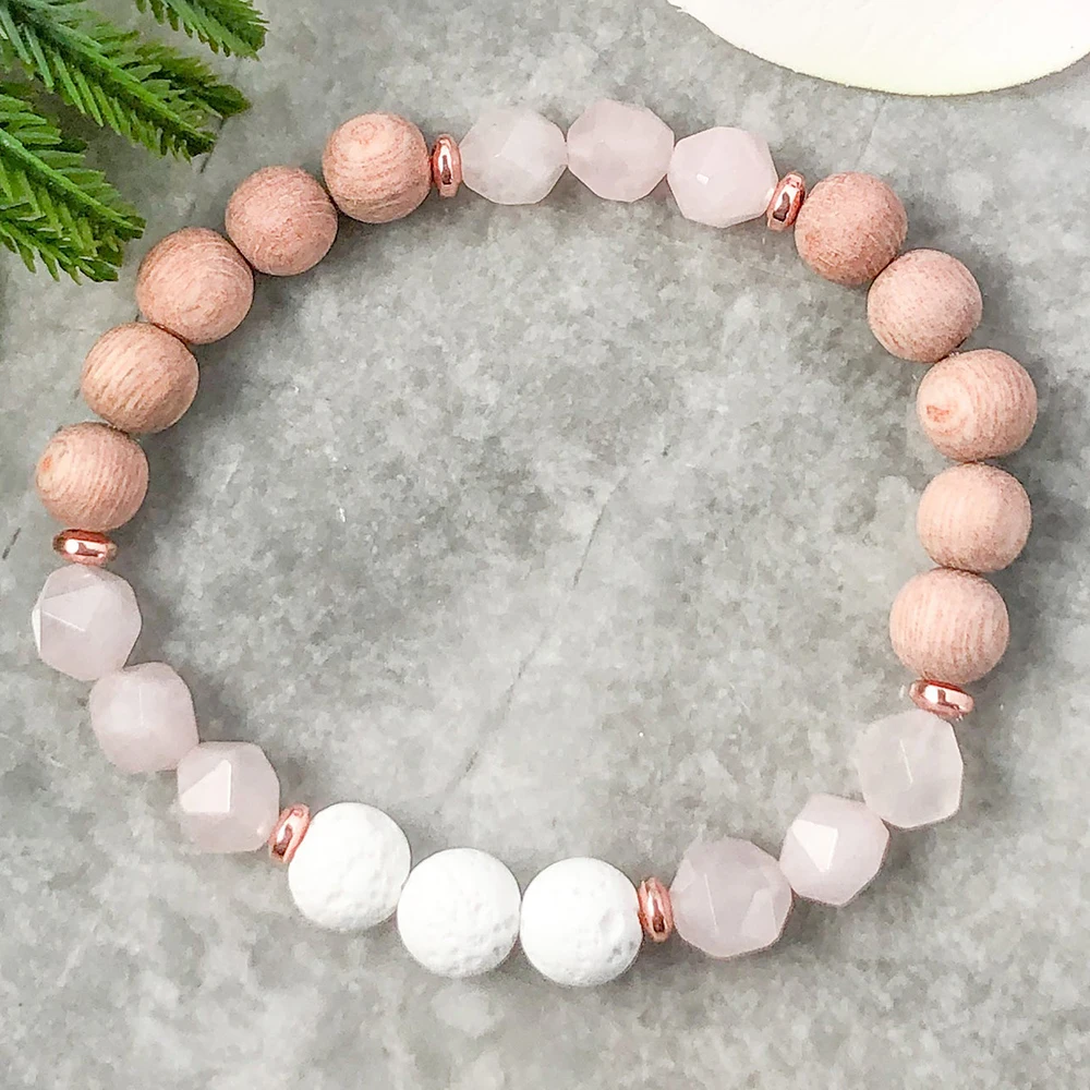 Ruberthen Cutted Rose Quartz Lava Stone Bracelet Natural Rosewood Beaded Bracelet Essential Oil Diffuser Energy Bracelet