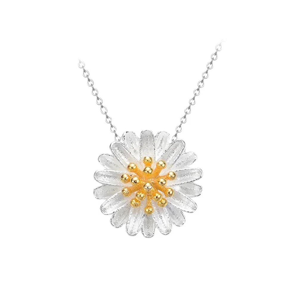 SAIYE S925 Sterling Silver Women's Chrysanthemum Pendant Necklace (40cm + 3.5cm) Luxury Jewelry Free Shipping