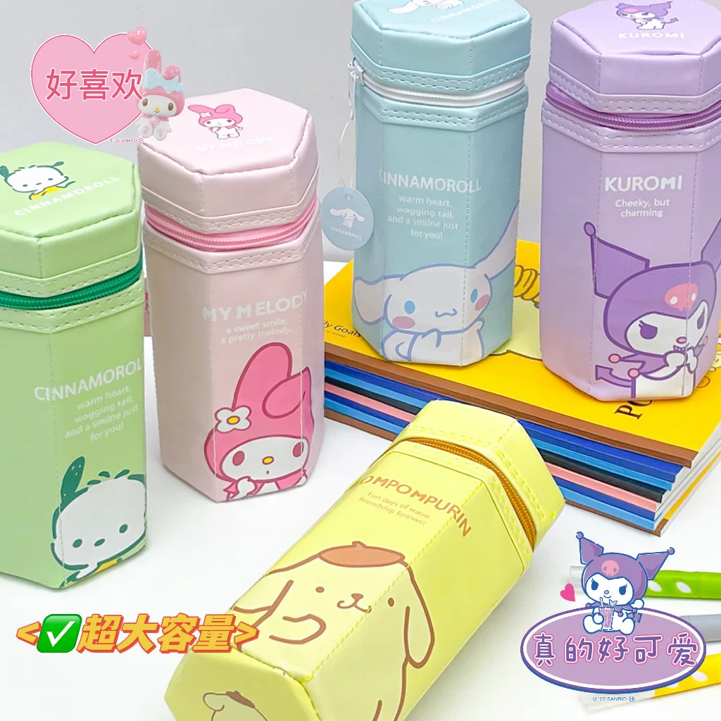 Sanrio High Capacity Pen Box Kawaii Kuromi Melody Anime Figure Pencil Case Zipper Pen Holder Pu School Supplies Stationery Gift