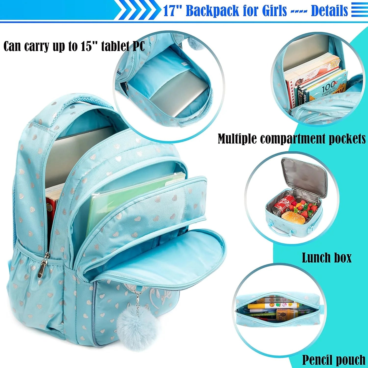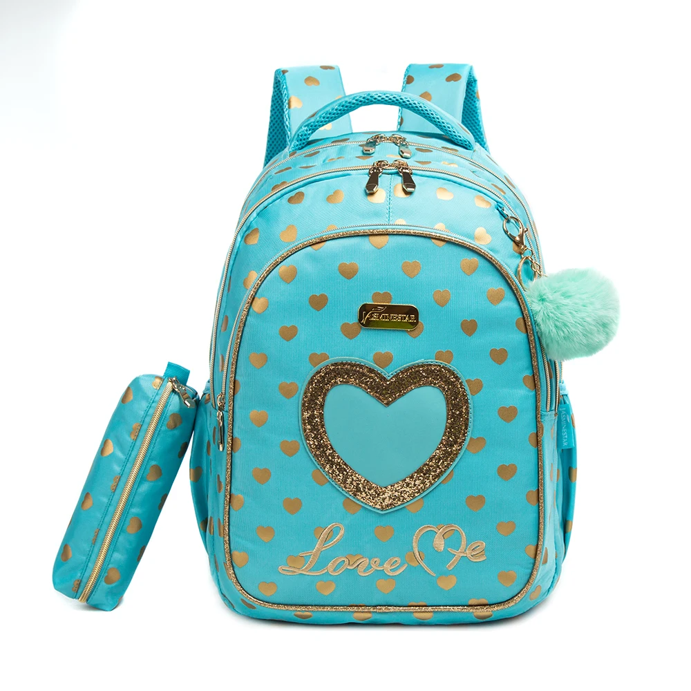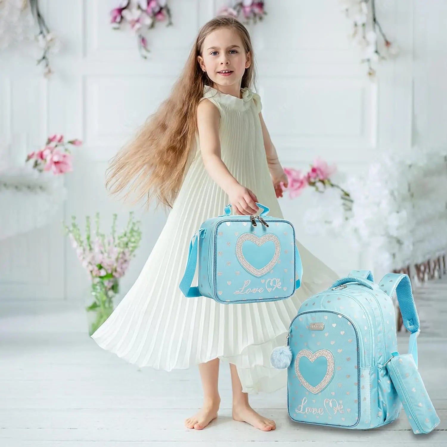 School Bags 3 in 1 Kids Bags for Girls Cute Love Kawaii School Bag Childrens School Backpack Waterproof Lunch Bag Pencil Case