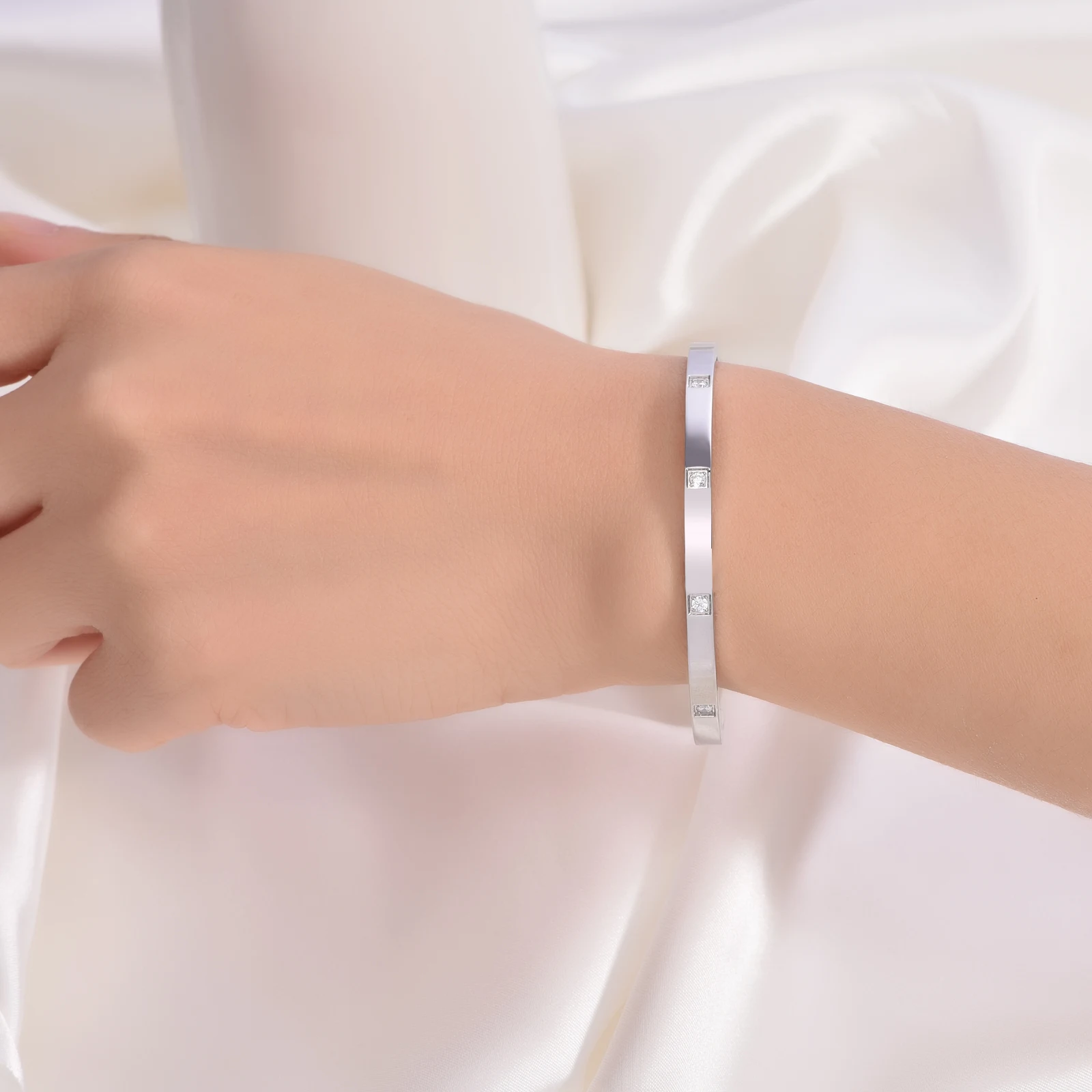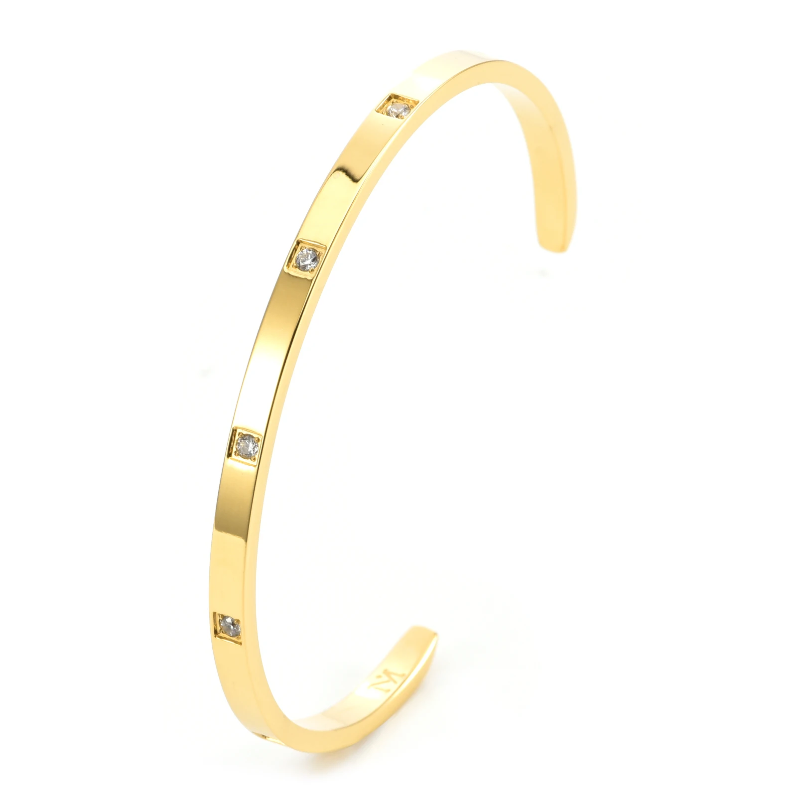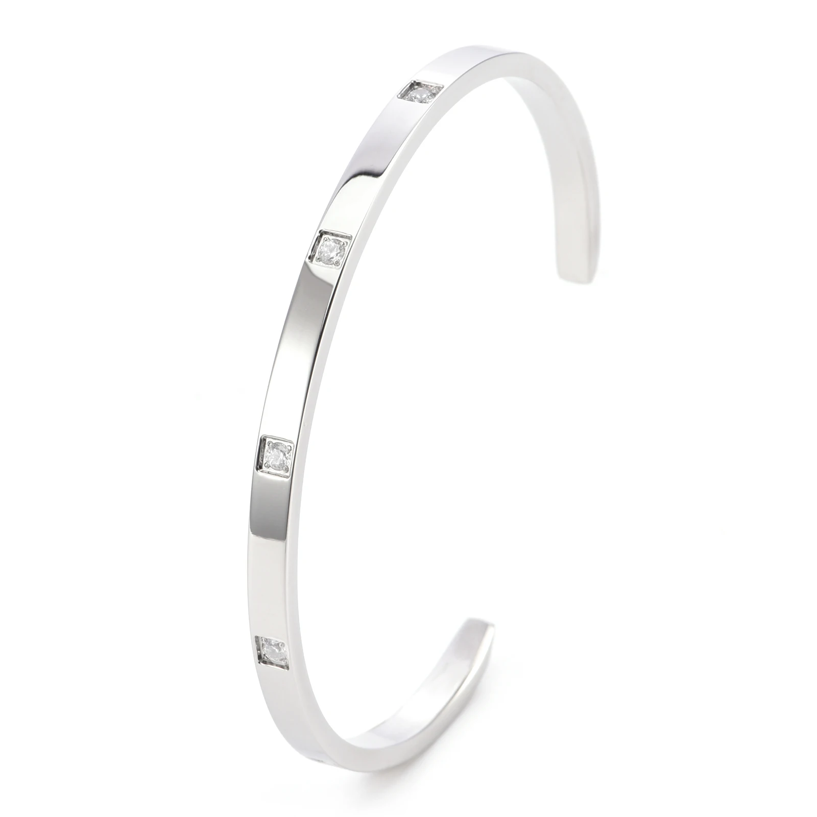 SDA Unisex Fashion Cuff Bracelet Gold Silver Black Color Stainless Steel 8pcs Zircon Open Bangle For Women and Men Jewelry