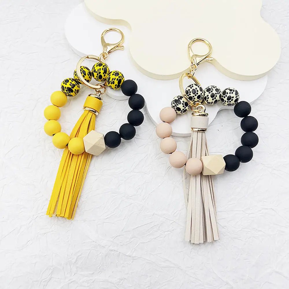 4. Variety of choices: silicone beaded fringed wood bead keychain is available in a variety of colors and styles to meet the preferences and needs of different people. You can choose the style that suits you according to your preferences and let the keychain become your personal symbol.
