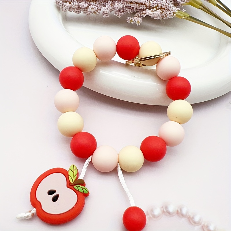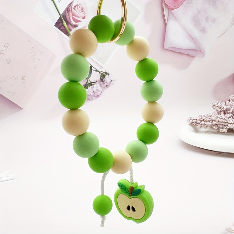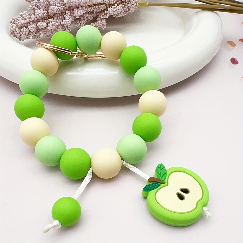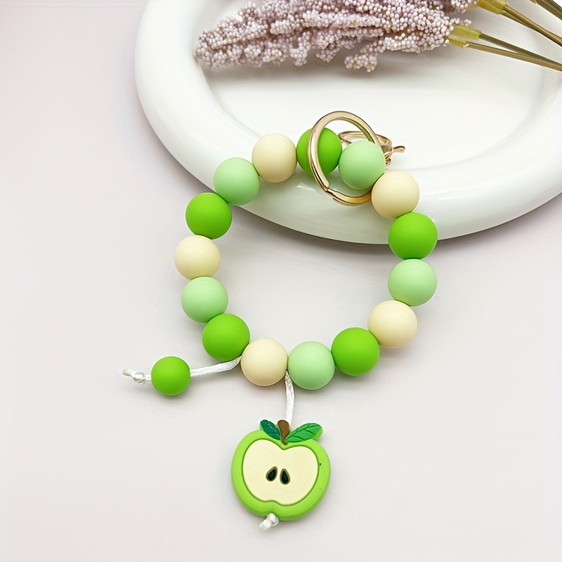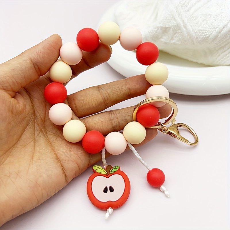 Silicone Beaded Apple Keychain, Cute Fruit Design Key Ring, Anti-Lost Bag & Car Key Holder, Perfect For Friends