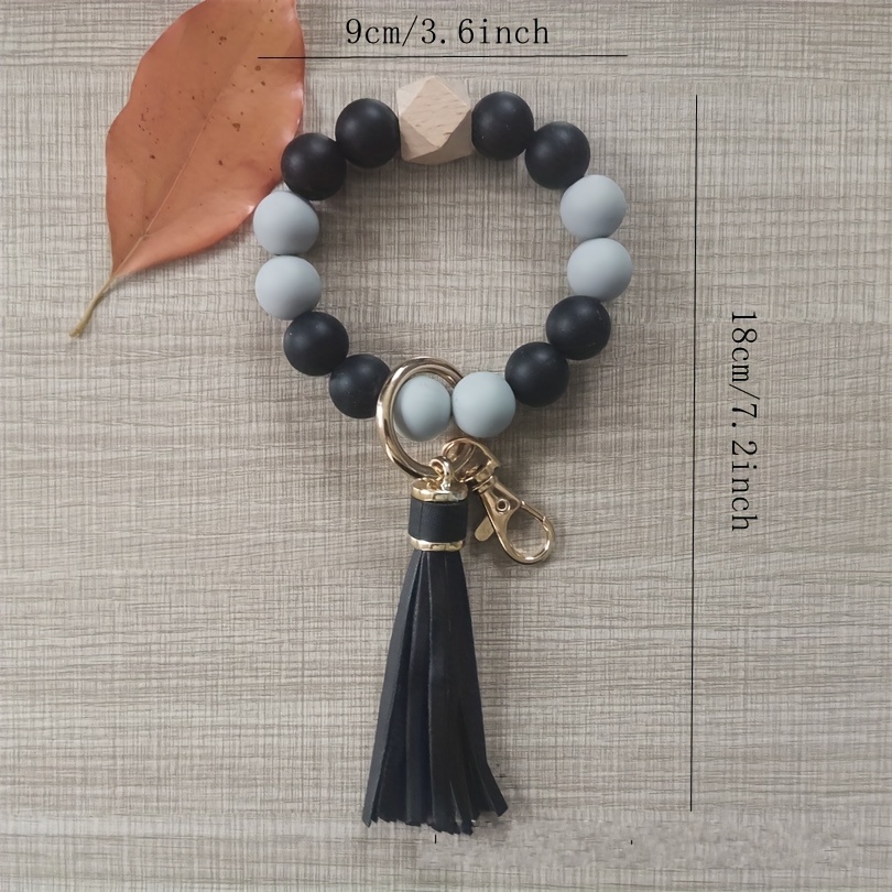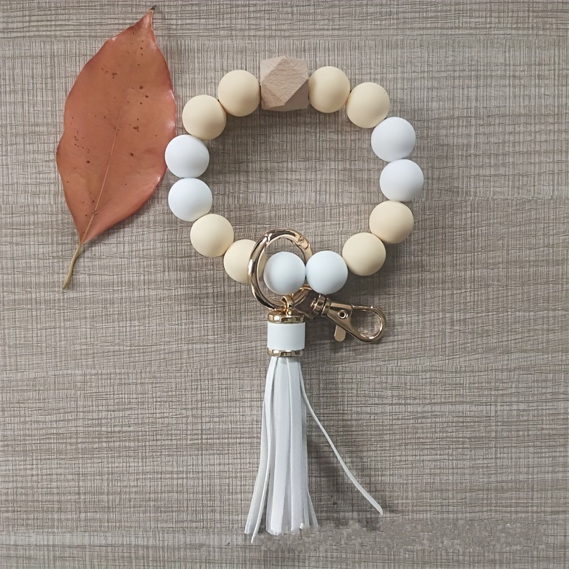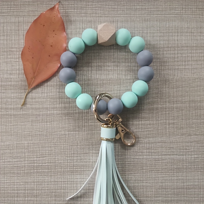 Silicone Beaded Bracelet Wristlet Keychain Color Block Bangle Key Chain Bag Charm Phone Lanyard Earbud Case Cover Accessories Women daily uses Gift