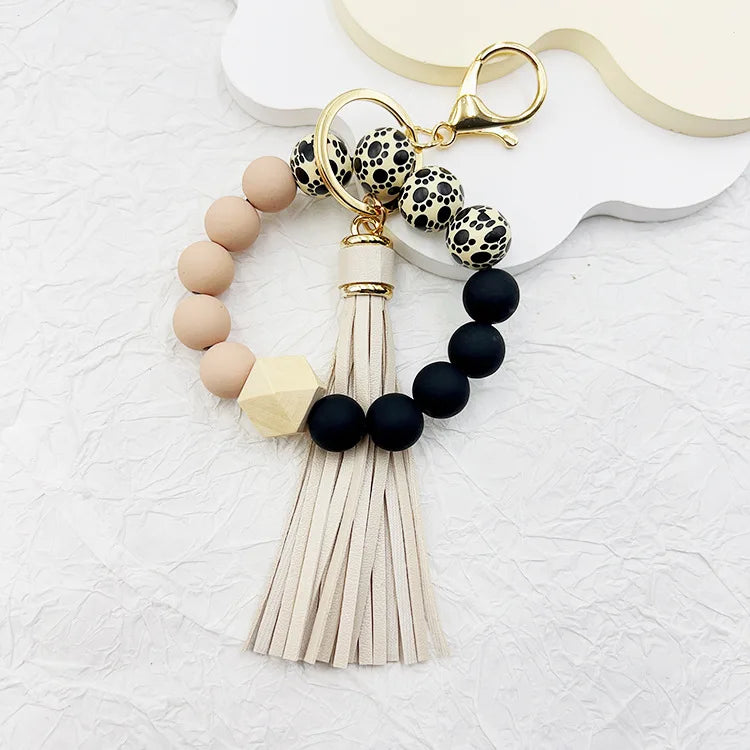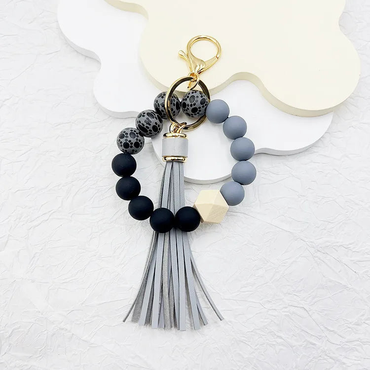 - The key chain is made of silicone beads, metal keyring and leather tassel, the silicone beads are smooth and elastic, easy to wear on the wrist, soft and comfortable to wear, suitable for most women's wrists.