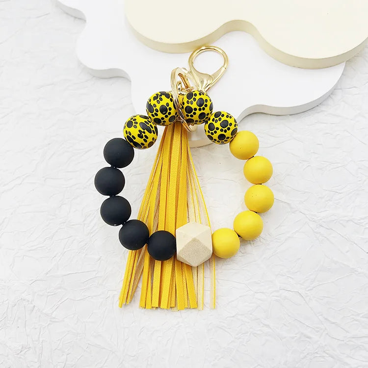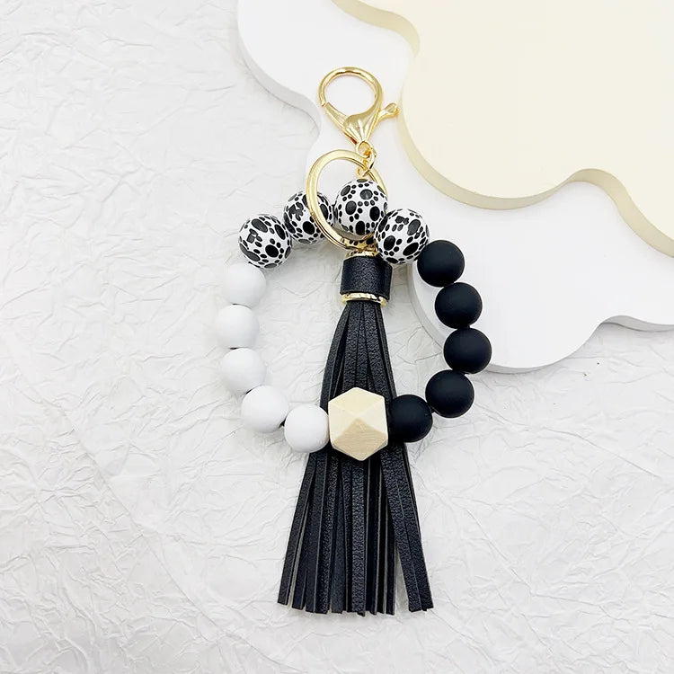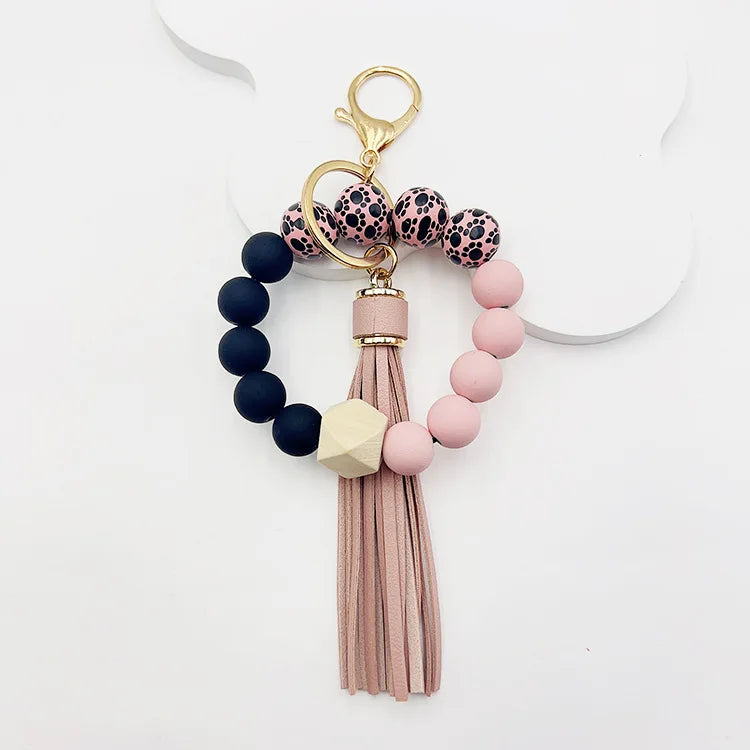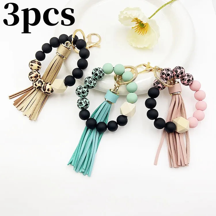 Hemasa Silicone Beads Keychain Bracelet with Tassels for Women