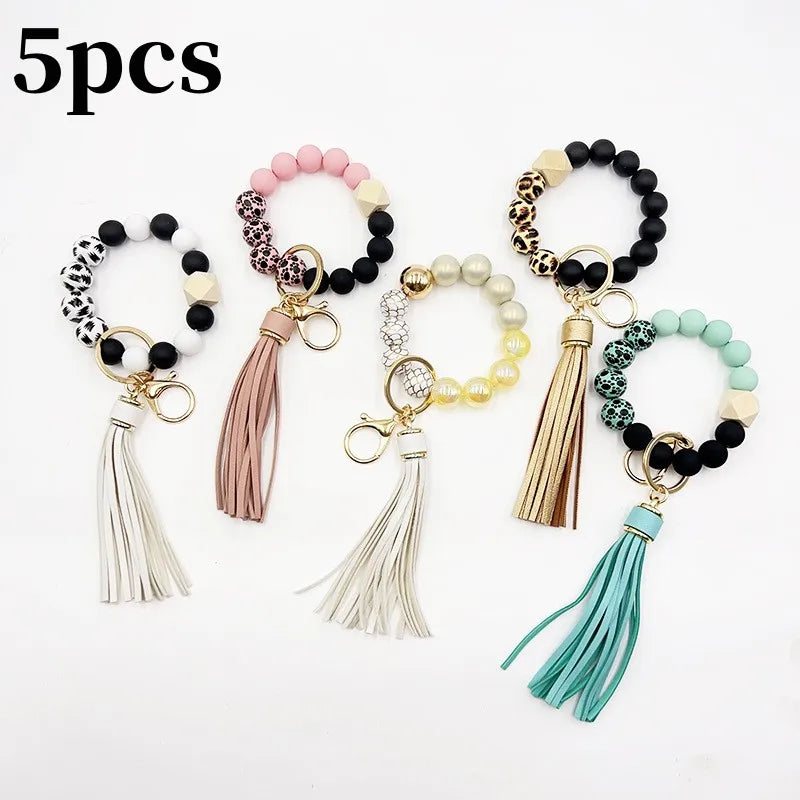Silicone Beaded Keychain Bracelet Beaded Keychain with Tassels Women Can Hang Wallets Keychain Men's Car Keychain