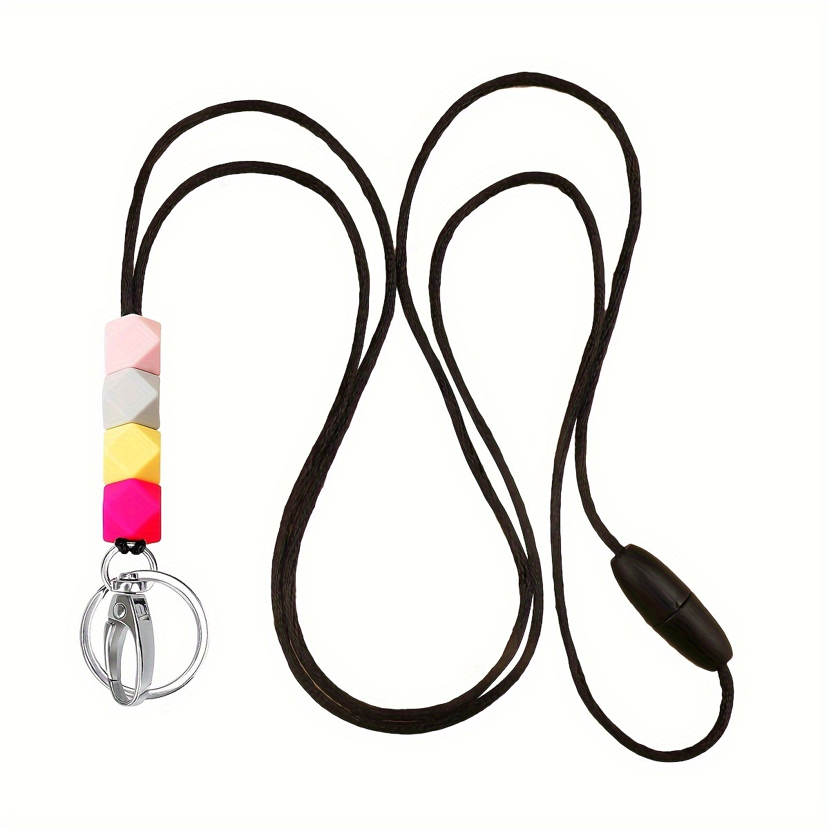 Silicone Beaded Keychain Lanyard - Detachable, Anti-Lost Necklace For Keys & Id Badge - Fashion Accessory For Women