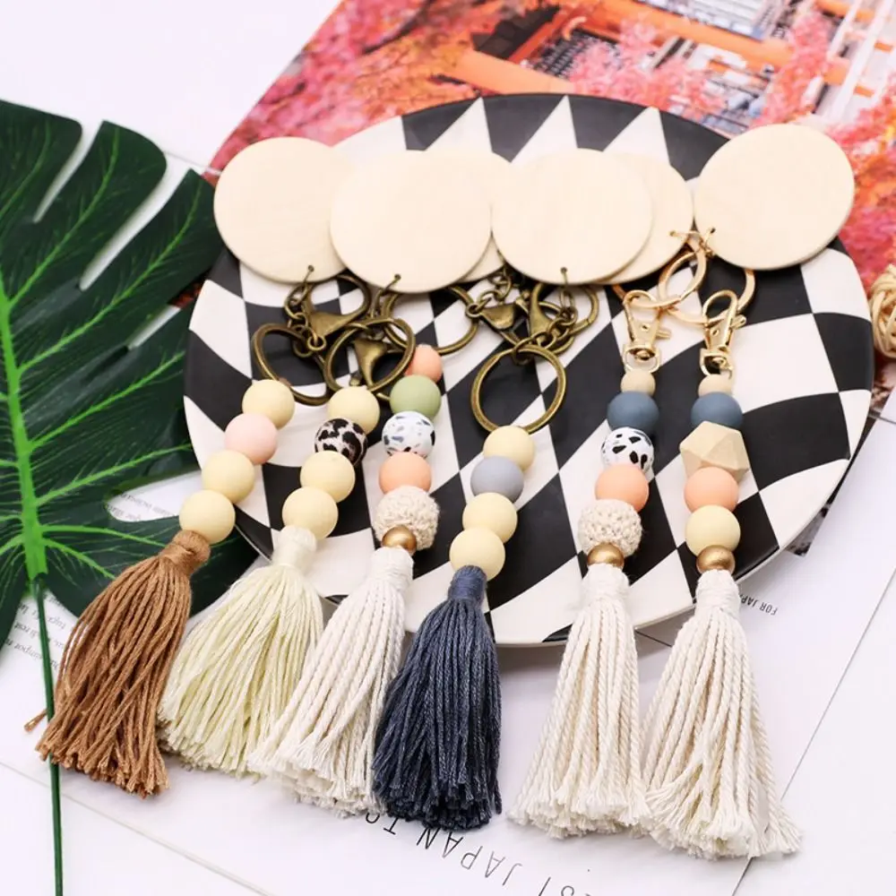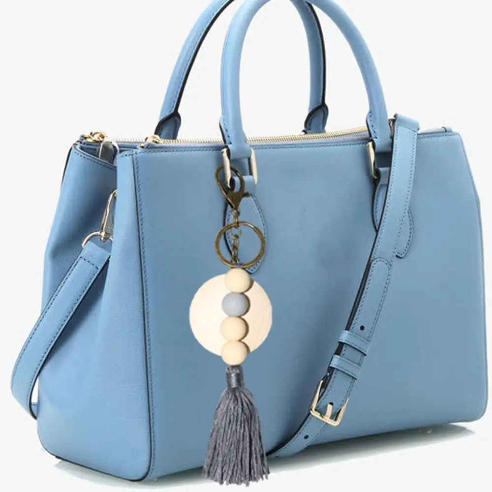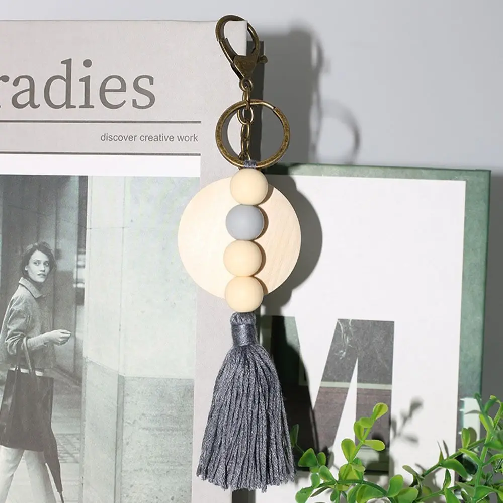 Silicone Beads Key Chain Decorative Pendant Tassel Key Ring Delicate Wooden Pendant Charms for Women Car Key Pendant