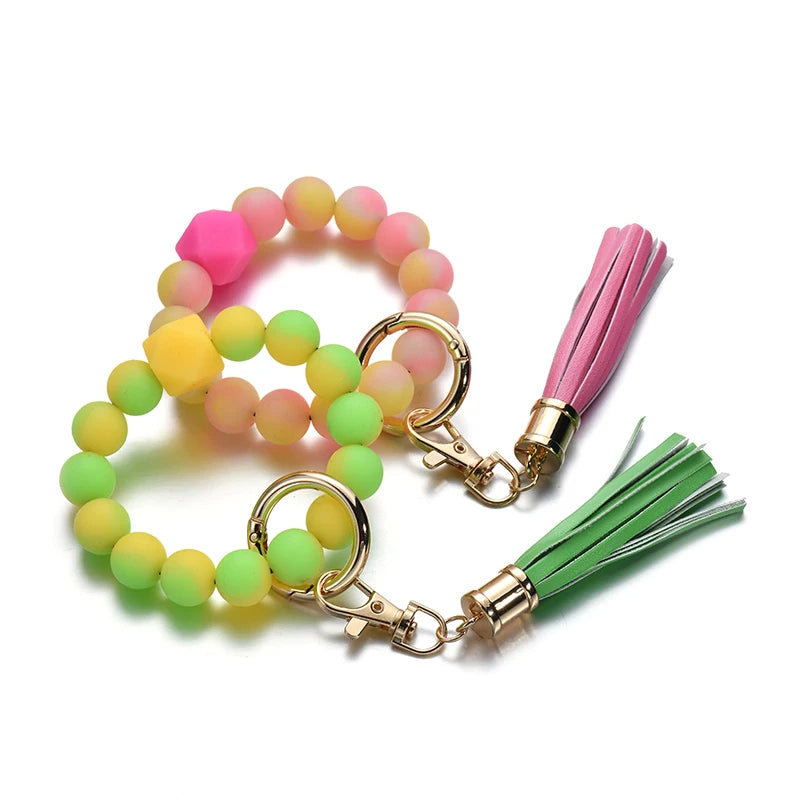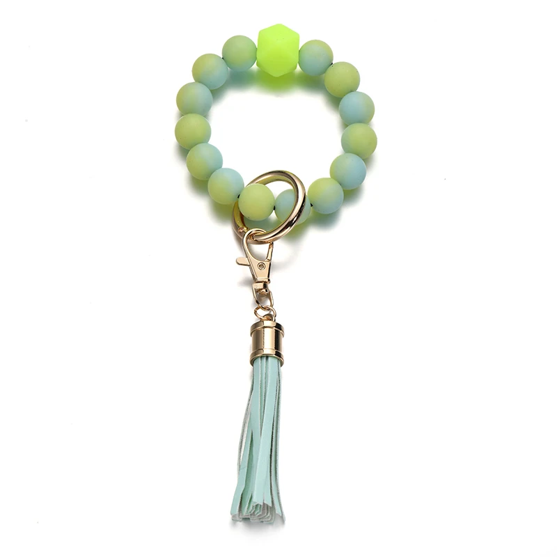 Silicone Beads Keychain Keyring For Women Wristlet Bracelet Tassels Pendant Keychain Jewelry Accessory glows in the dark