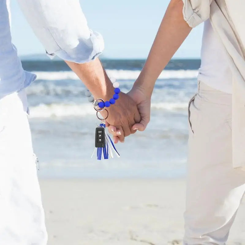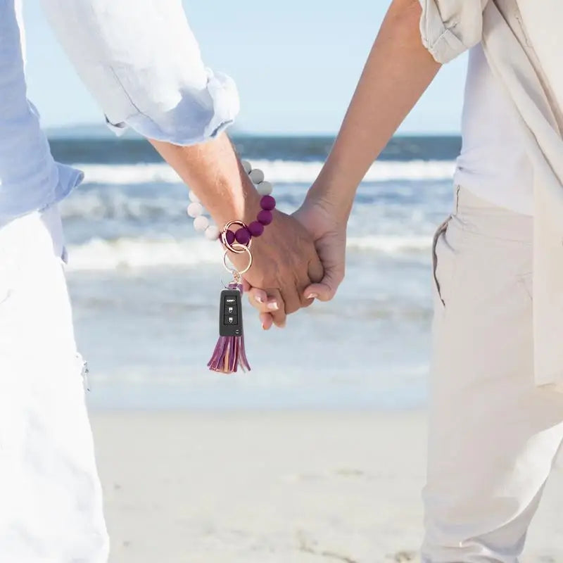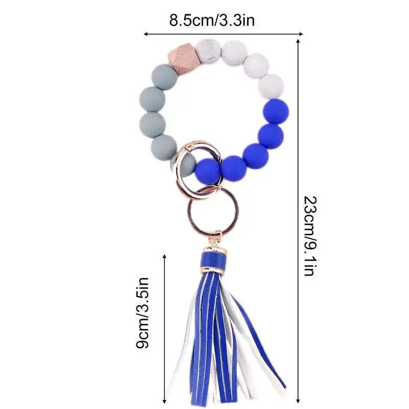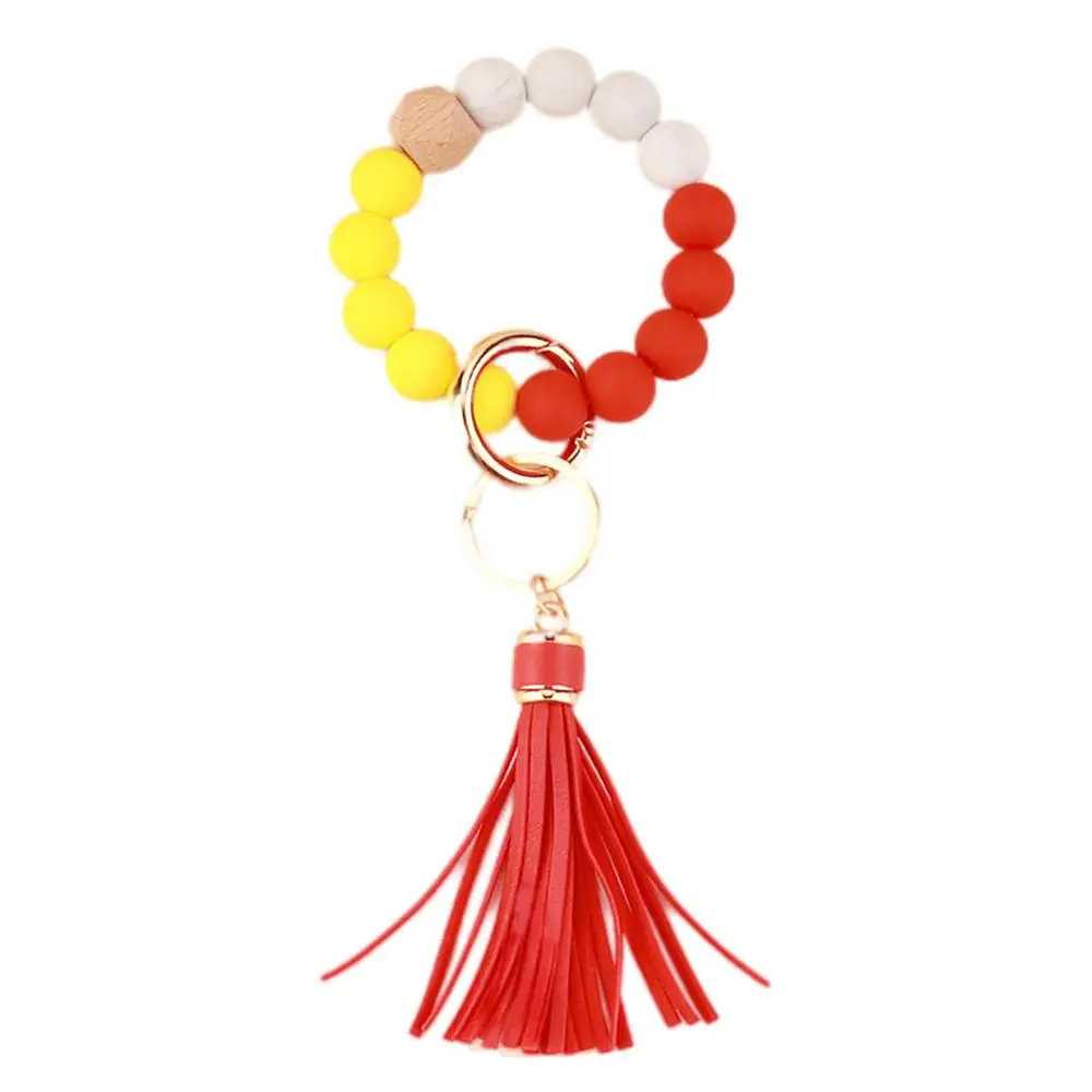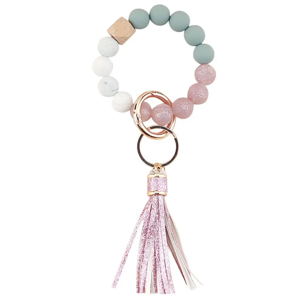 Silicone Key Rings Tangling Beaded Keyring Wristlet House Car Keyring Bangle Chains For Women With Leather Tassel