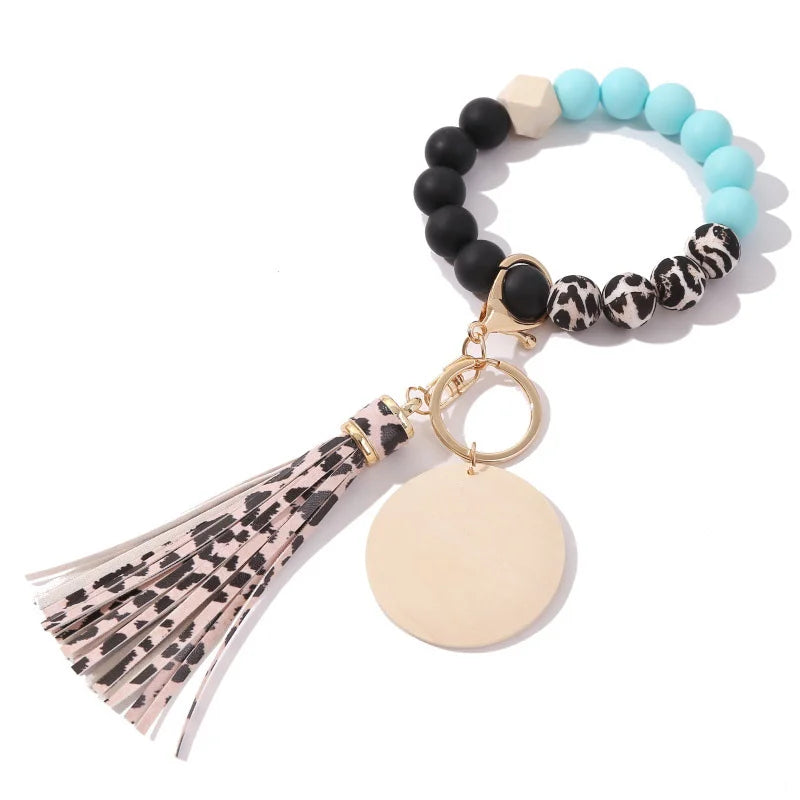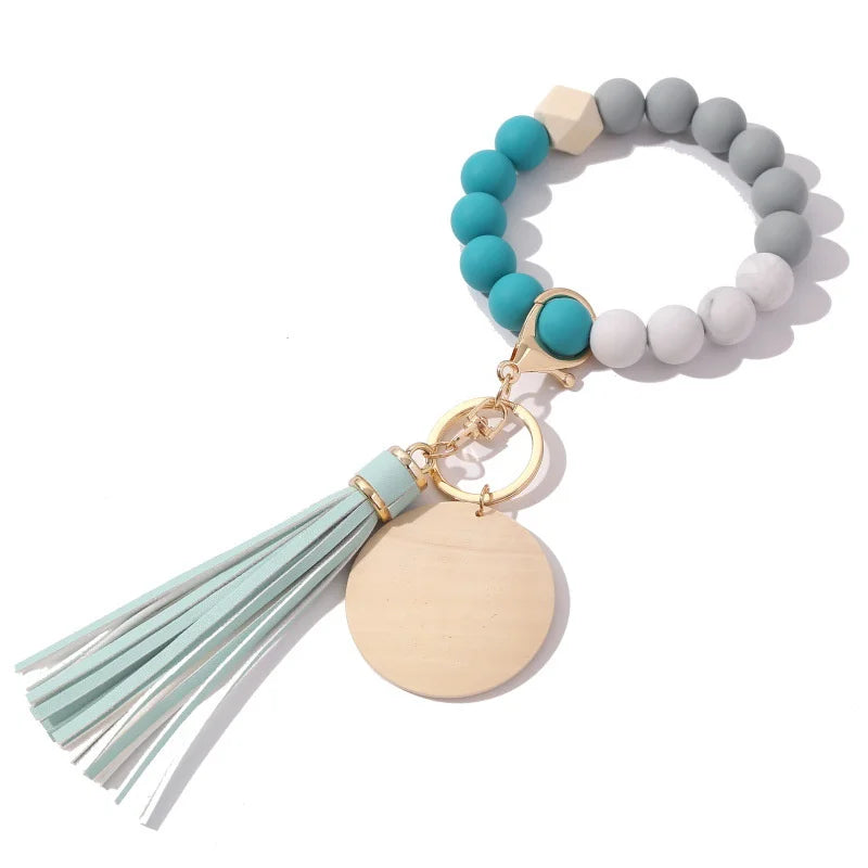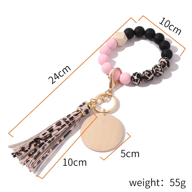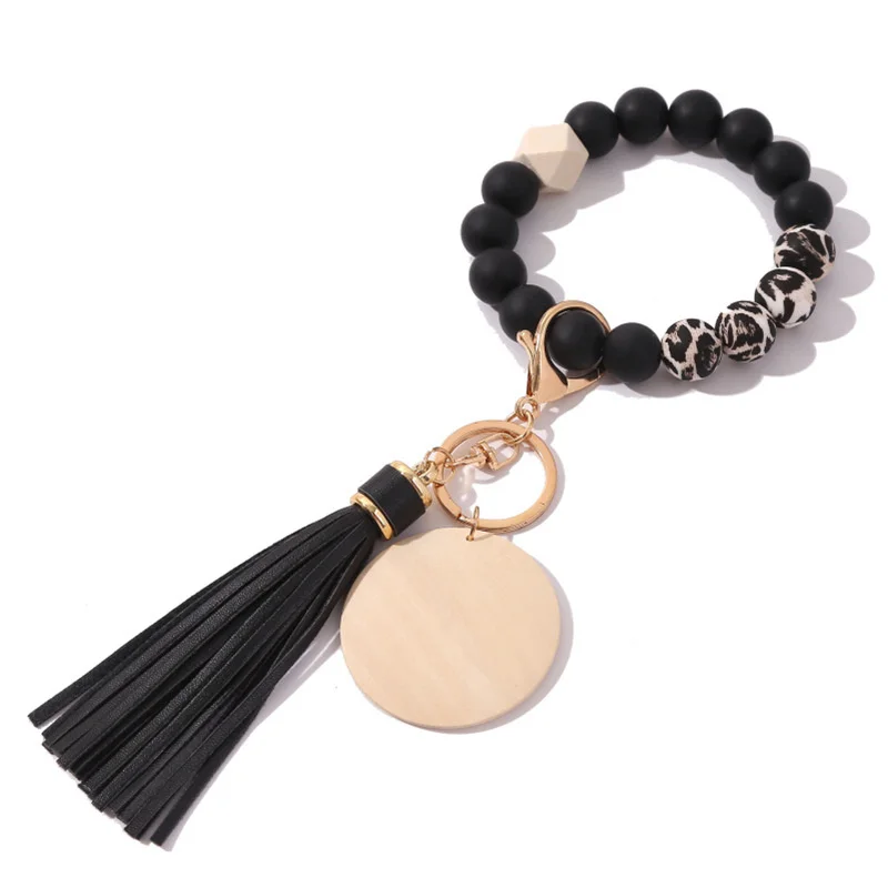 Silicone Keychain With Wood chips Tassel Wood Beads Keyring For Women Multicolor Keychain Charms Fashion Jewelry Accessories New