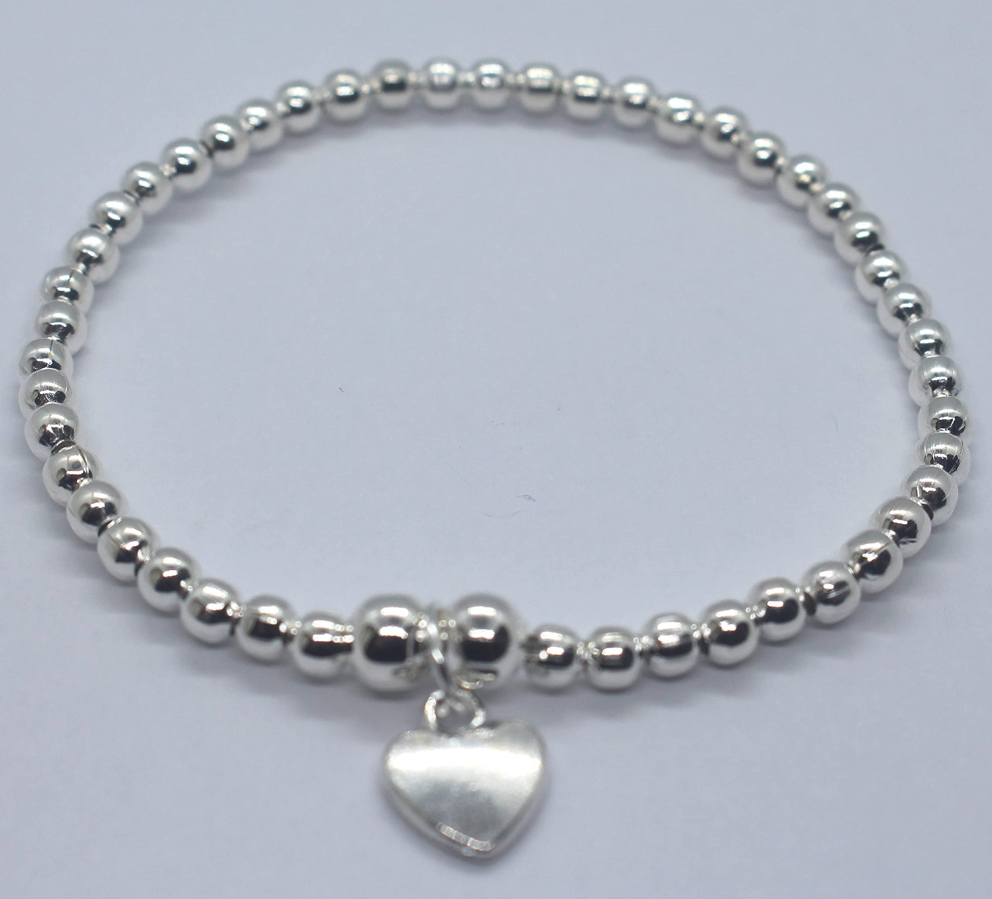 Silver Colour Round Beads With Heart Charm Stretchable Bracelet