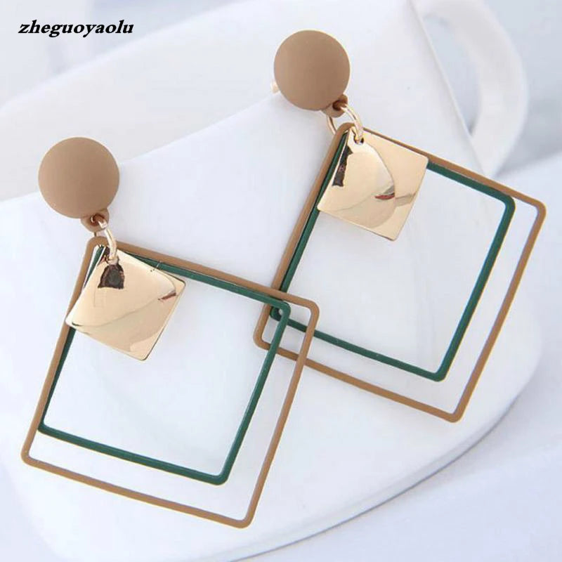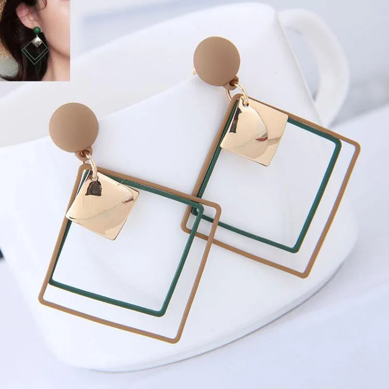 Simple And Versatile Long Geometric Earrings Temperament Net Red Tide Square Sequined Pendant Earrings For Women Jewelry Brincos
