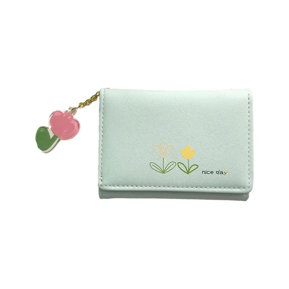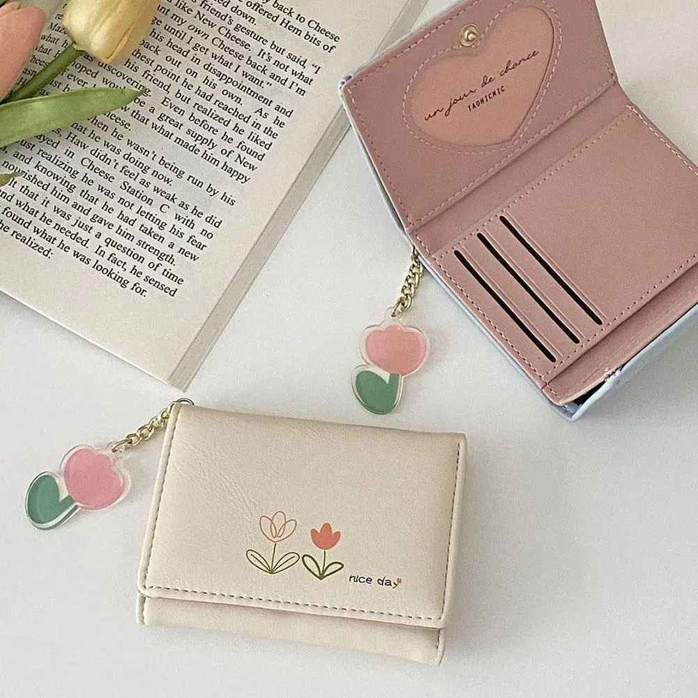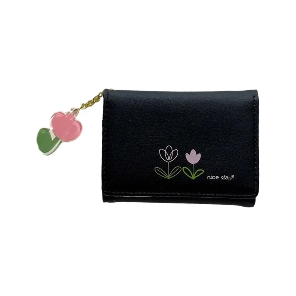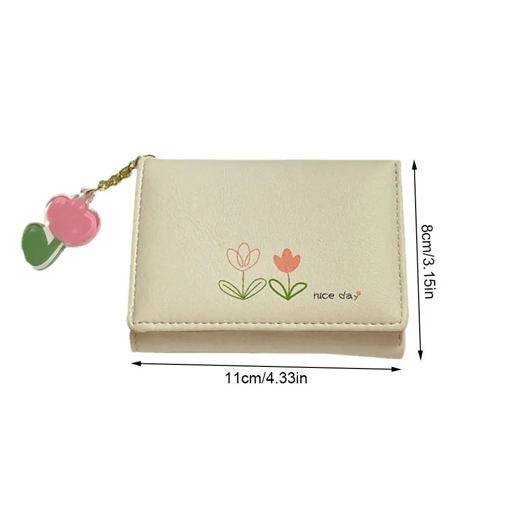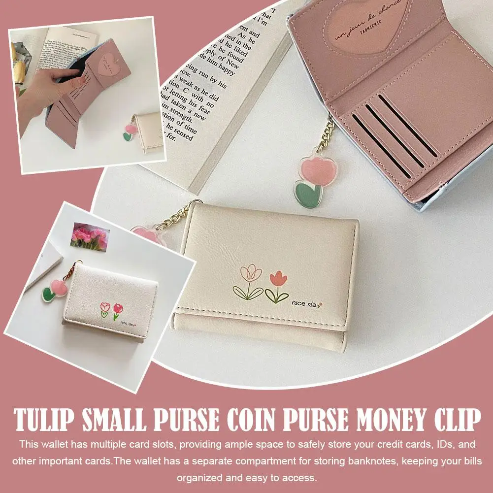 Small Wallet Tulip Short Wallet Student Triple Fold Card Holder Girl ID Bag Coin Purse Cute Wallets for Women Change Storage