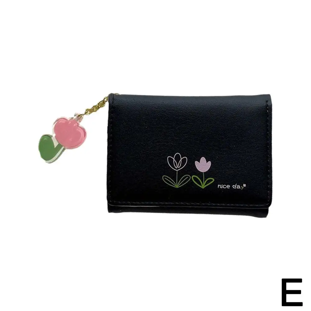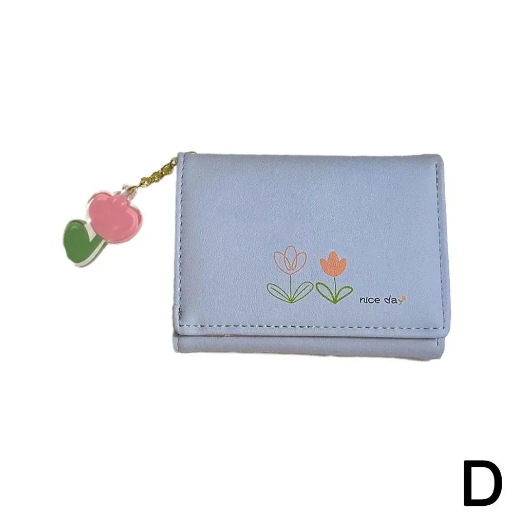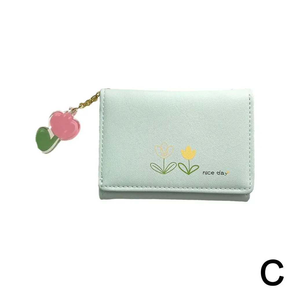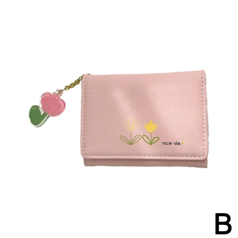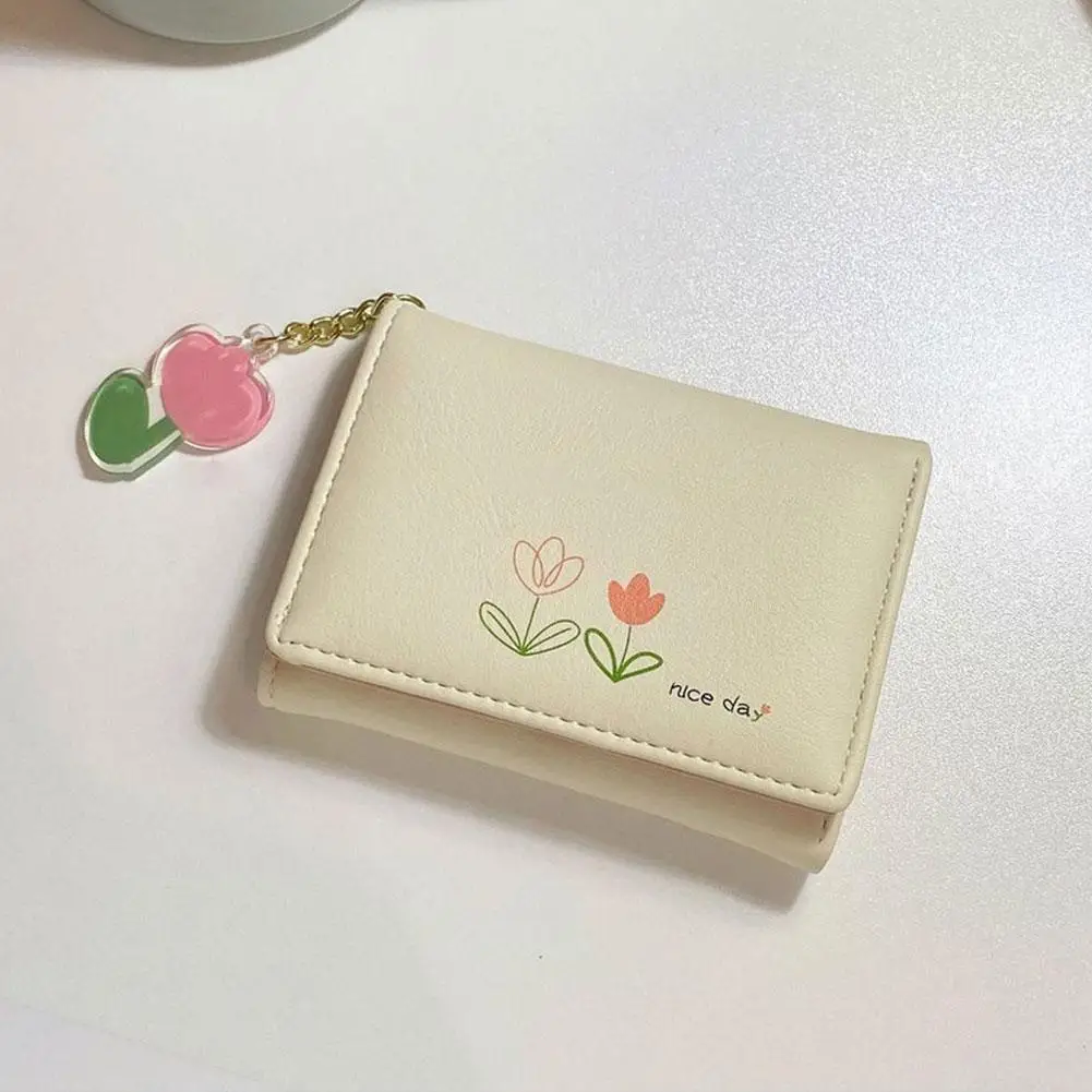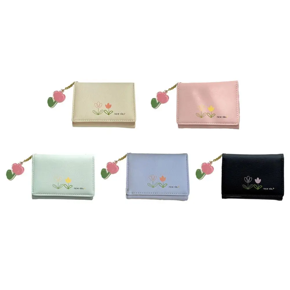 Small Wallet Tulip Short Wallet Student Triple Fold Card Holder Girl ID Bag Coin Purse Cute Wallets for Women Change Storage