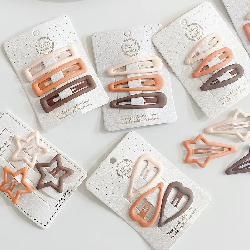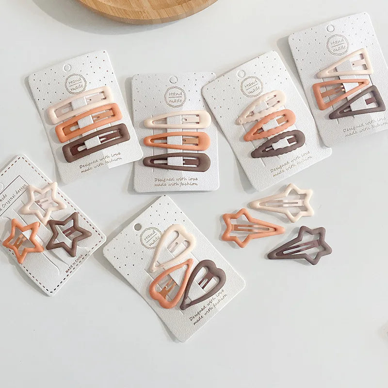 Snap Hair Clips Frosted Simplicity Hairpins for Girls Hairpin Click Clack Star Oval Triangle Square Hair Clips for Kids 3pcs/lot
