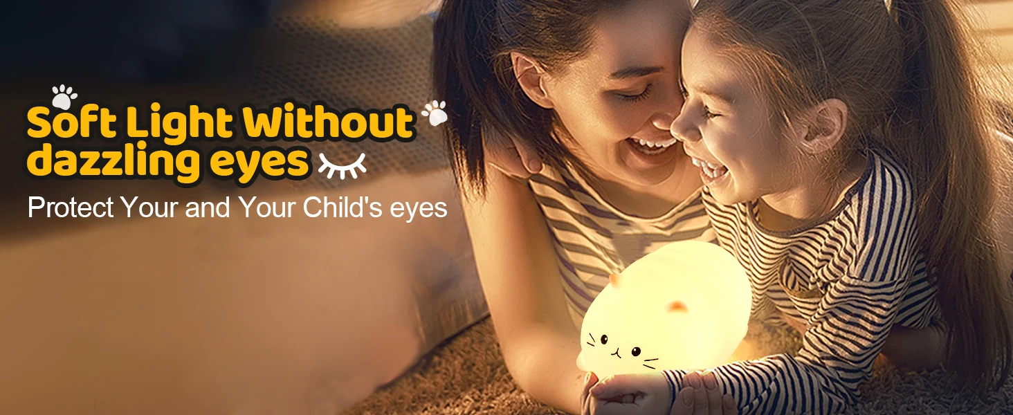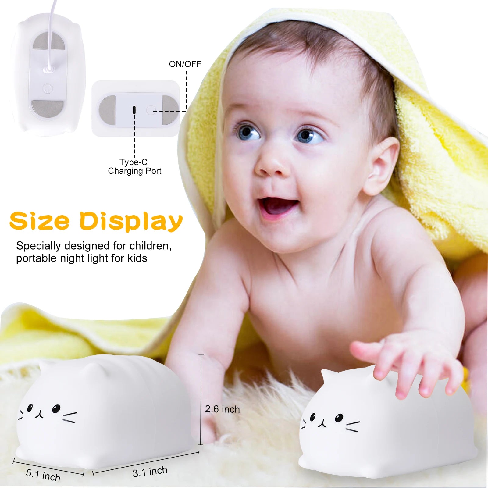 Soft Cat Led Night Light Rechargeable Eye Protection Bedroom Bedside Silicone Lamp For Children Kids Kitten Baby Gift