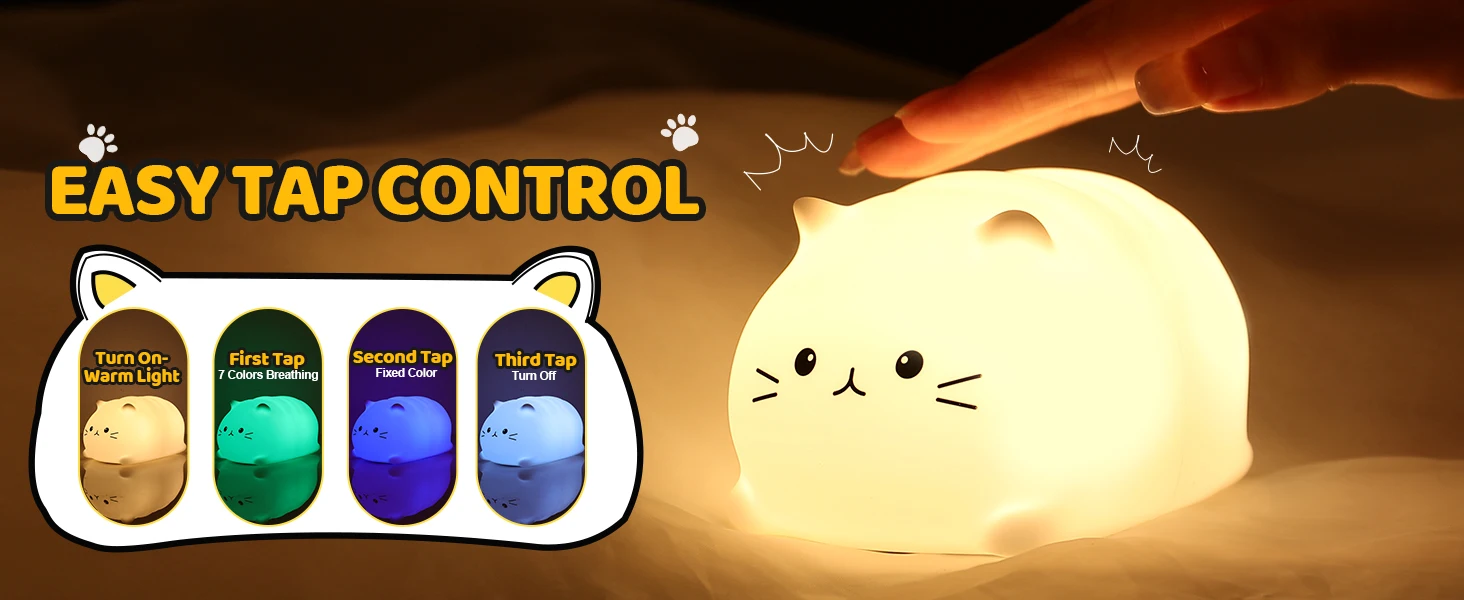 Tap the product to adjust the light changes: when the power switch is turned on and the light is warm yellow, the first tap, the light is three-color gradient for three seconds; the second tap, the light color stays at the color of the tap; the third tap, the light is off; The cycle repeats. Without any action, it will be extinguished automatically after 1 hour.