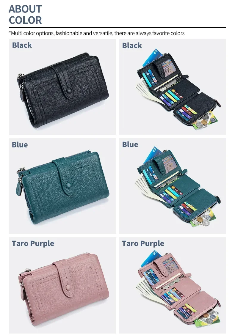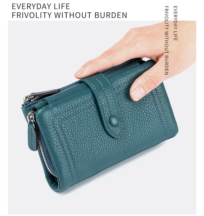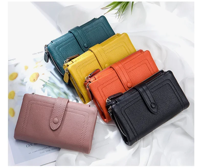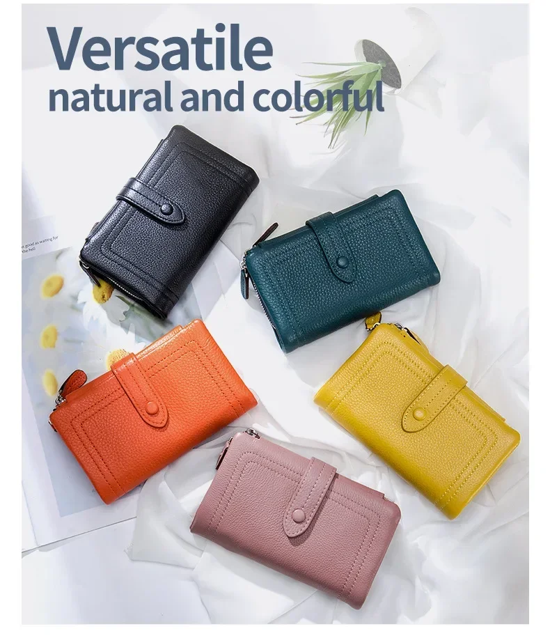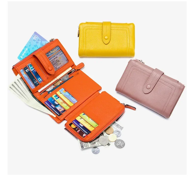 Soft leather high-end ladies short tri-fold wallet large capacity genuine leather fashion folding small wallet with multiple car