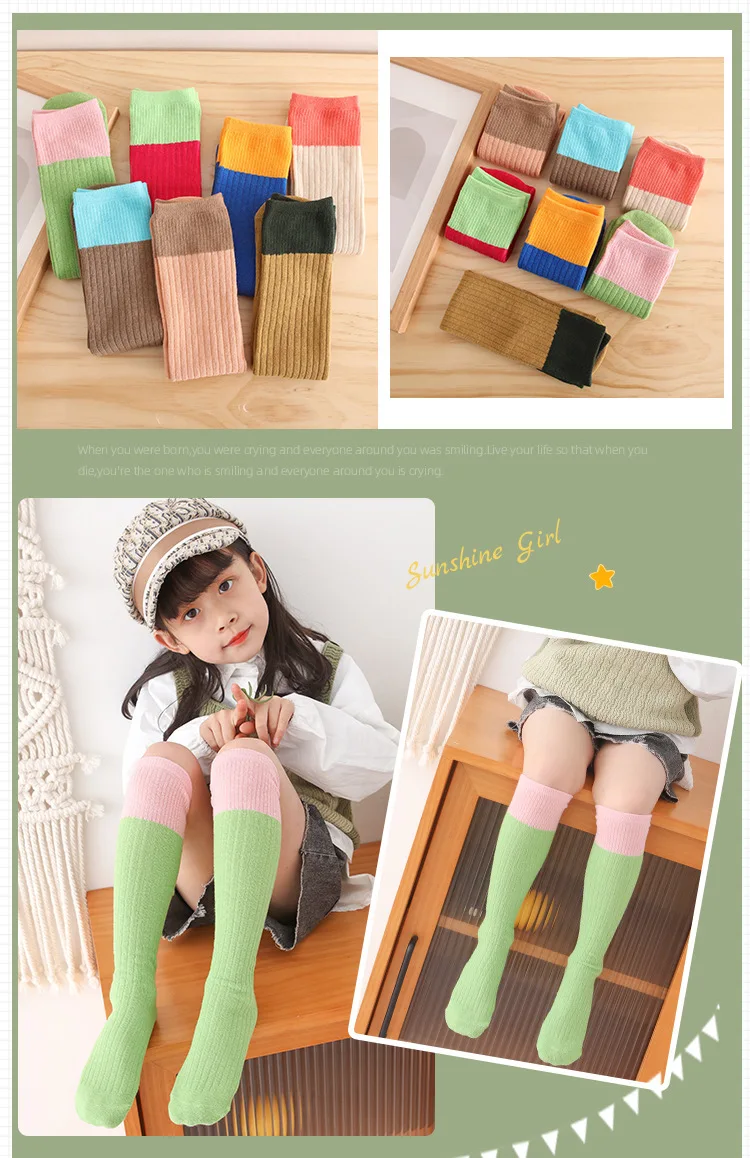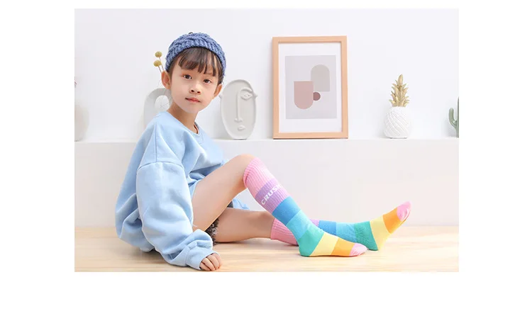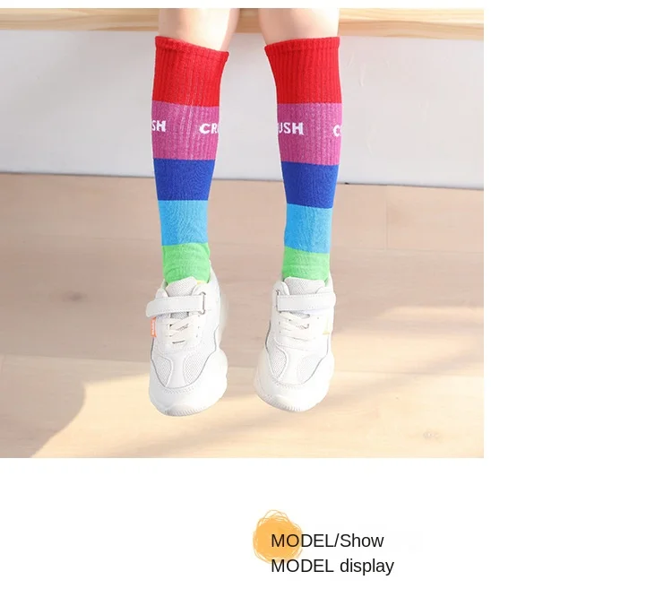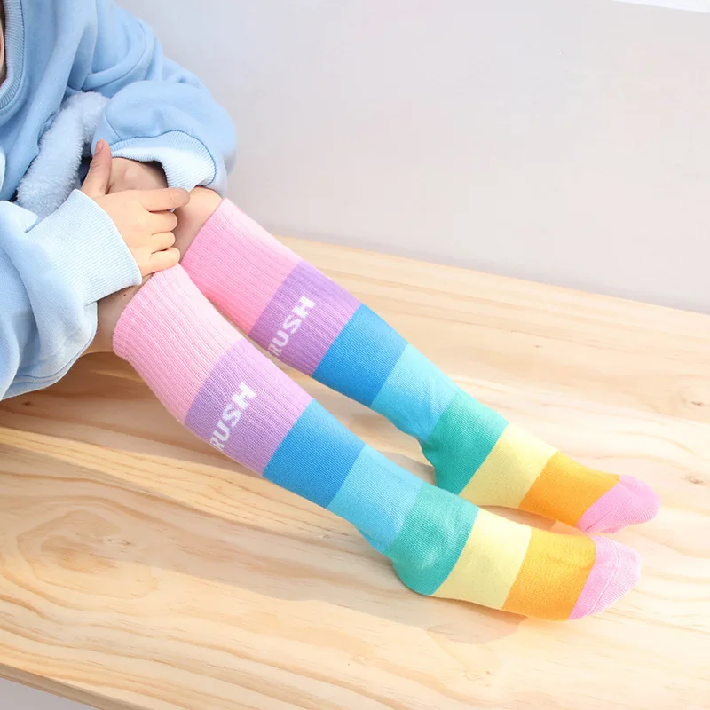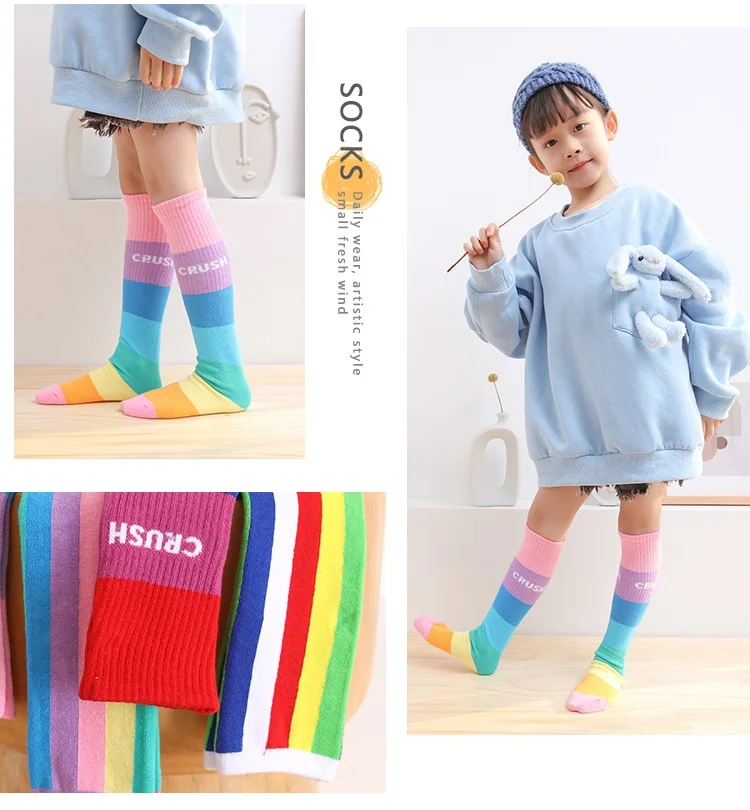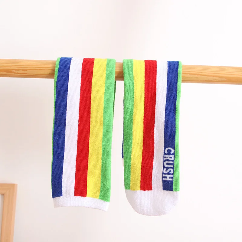 Spring Autumn Girls Cotton Ankle Short Lovely Socks Rainbow Multicolor Kids Children Knee High Legwarmers Infant Baby Freeship