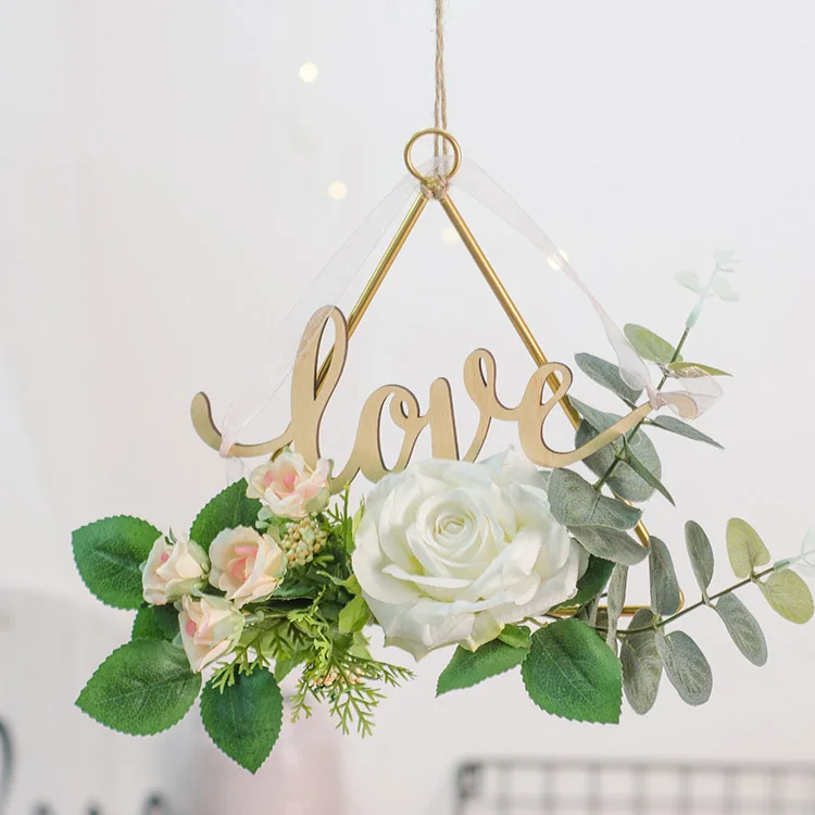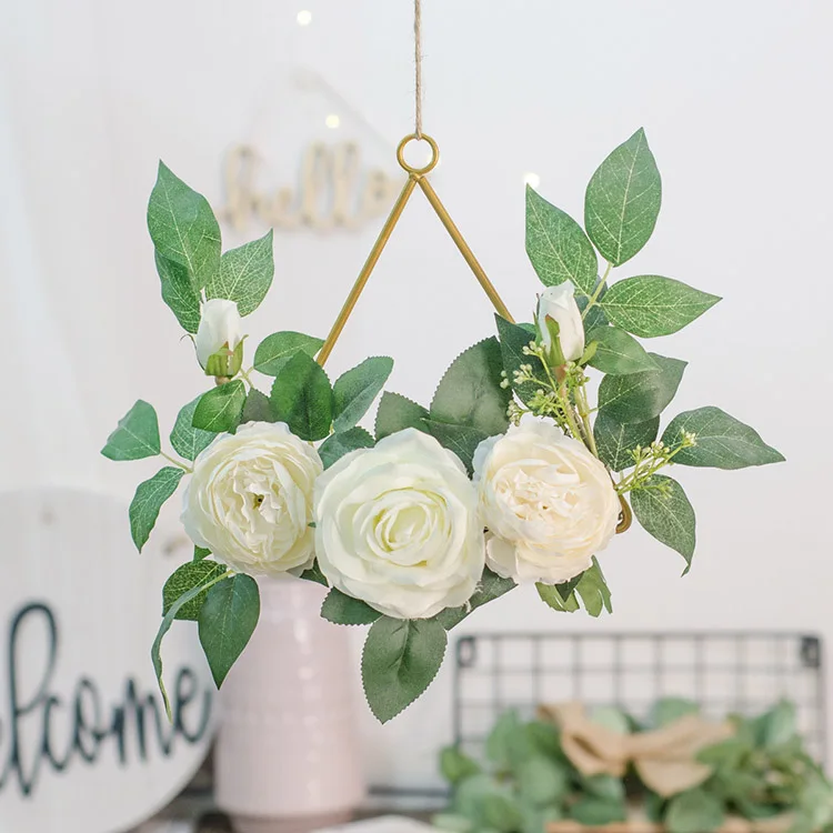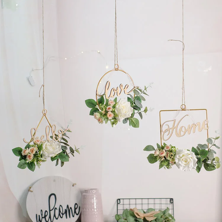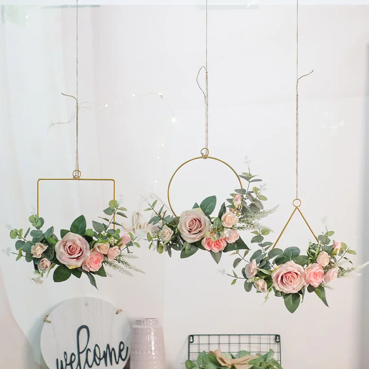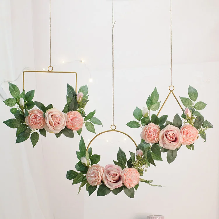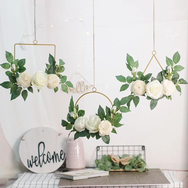 Square Round Metal Plant Wall Hangings Flowers Wreath Frame Iron Art Home Interior Decoration