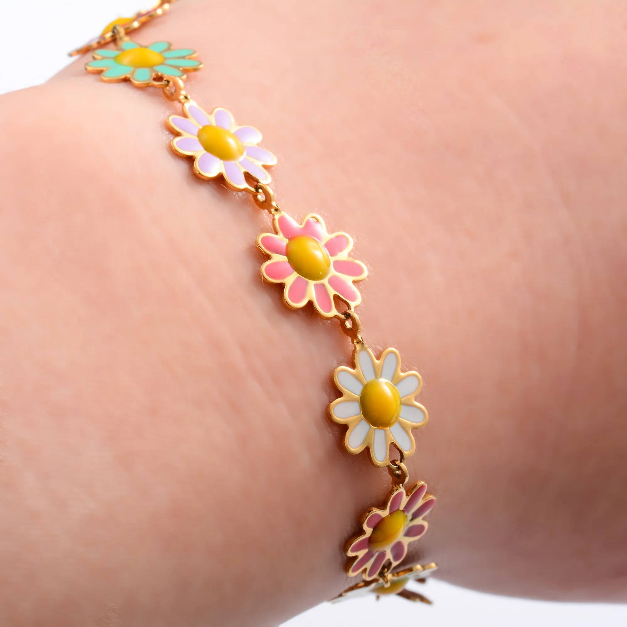 Stainless Steel Bracelet for Women Sweet Colorful Sunflower Link Hand Chain Bangle with Extender Anklet Jewelry Accessories Gift