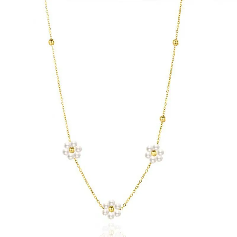 Stainless Steel Gold Color Pearl Flower Necklace For Women Elegant Imitation Pearl Handmade Beaded Necklaces Wedding Jewelry