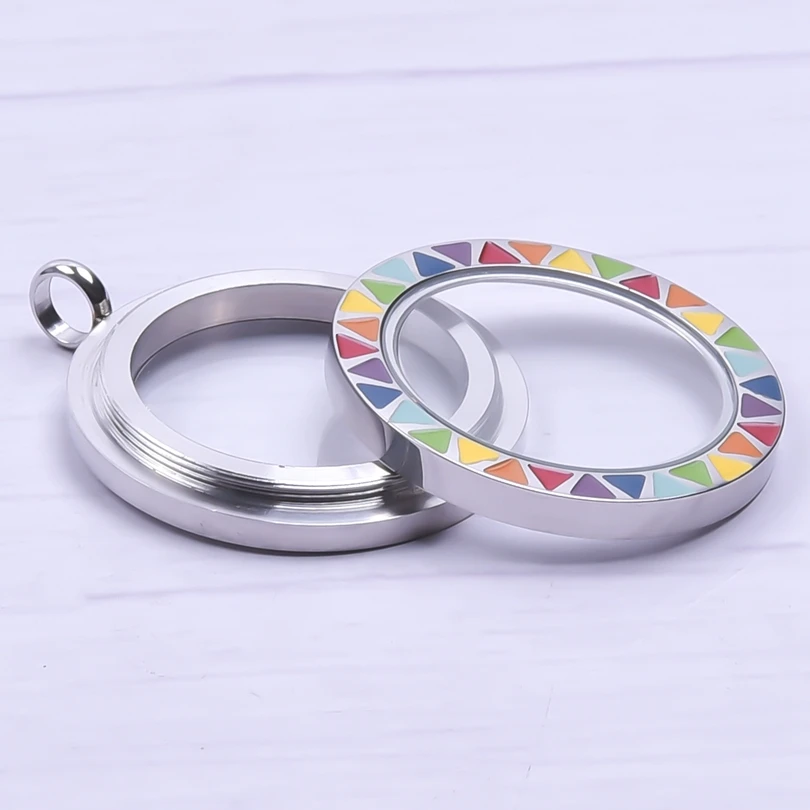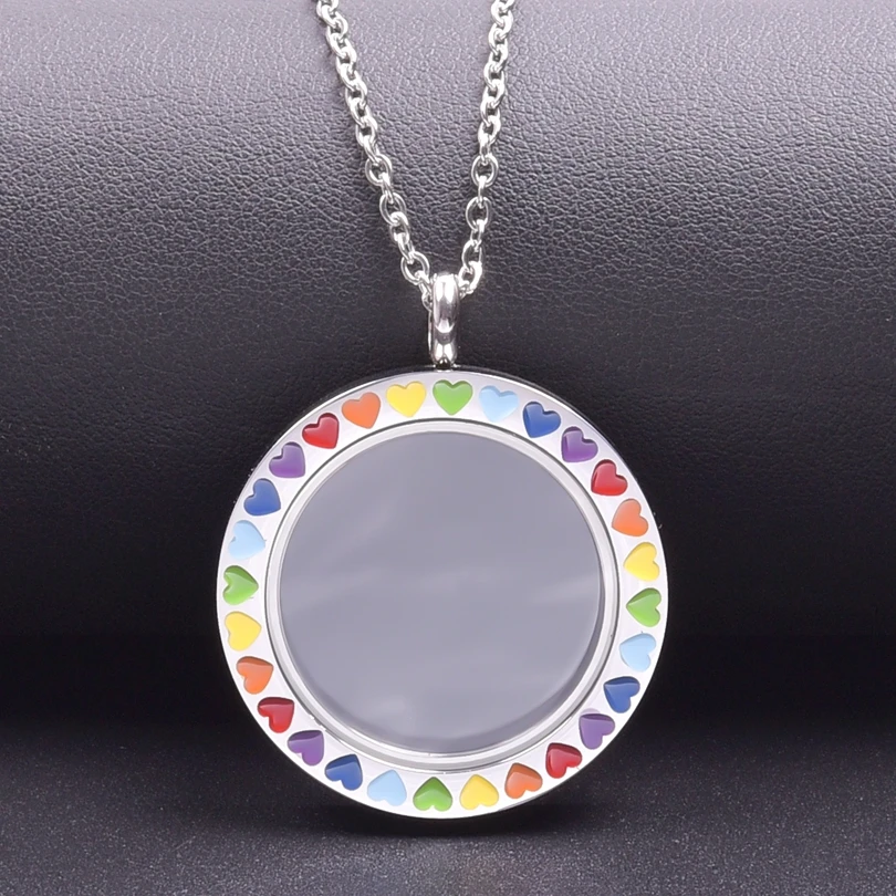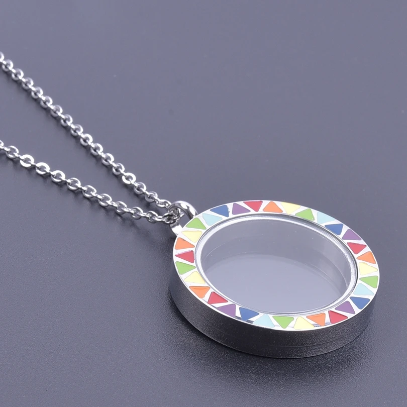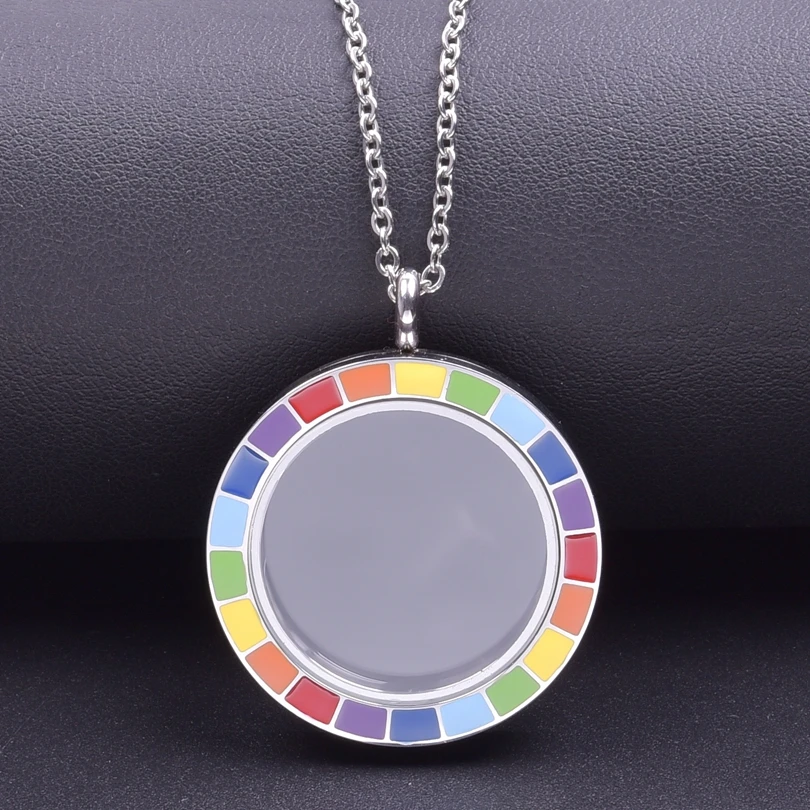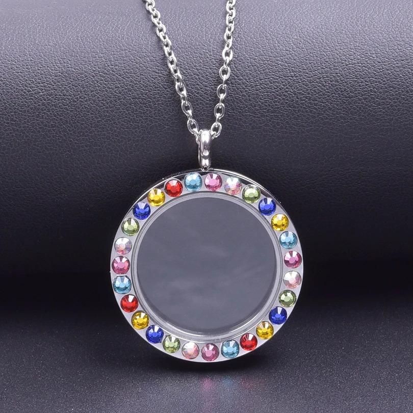 Stainless Steel Necklace for Women Glass Floating Locket Bohemia Colorful Medallion Relicario Photo Collar Long Chain Jewelry