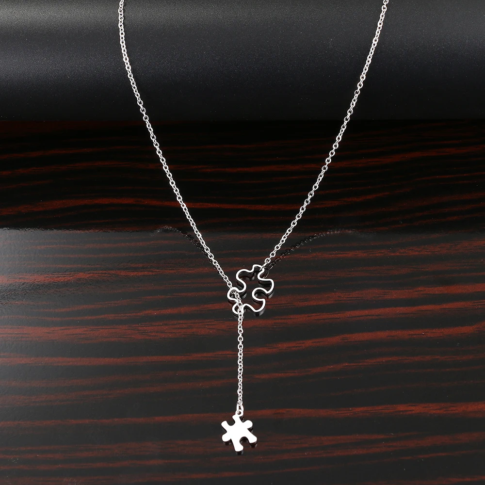 Stainless Steel Necklaces Simple Puzzle Double Accessories Pendant Chain Choker Charm Fashion Necklace For Women Jewelry Gifts