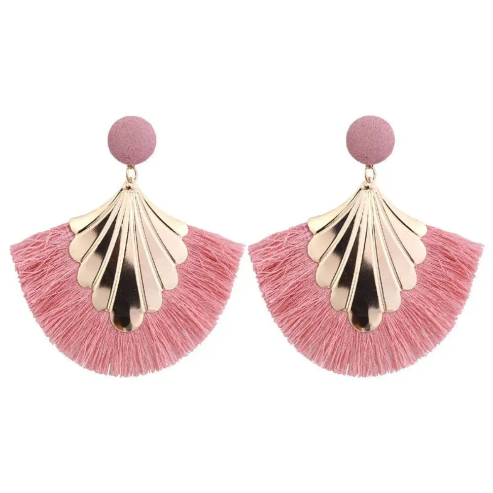 SUMENG 2024 New Bohemia Fan Shaped Tassel Earrings For Women Exaggerated Big Statement Fringed Fashion Dangle