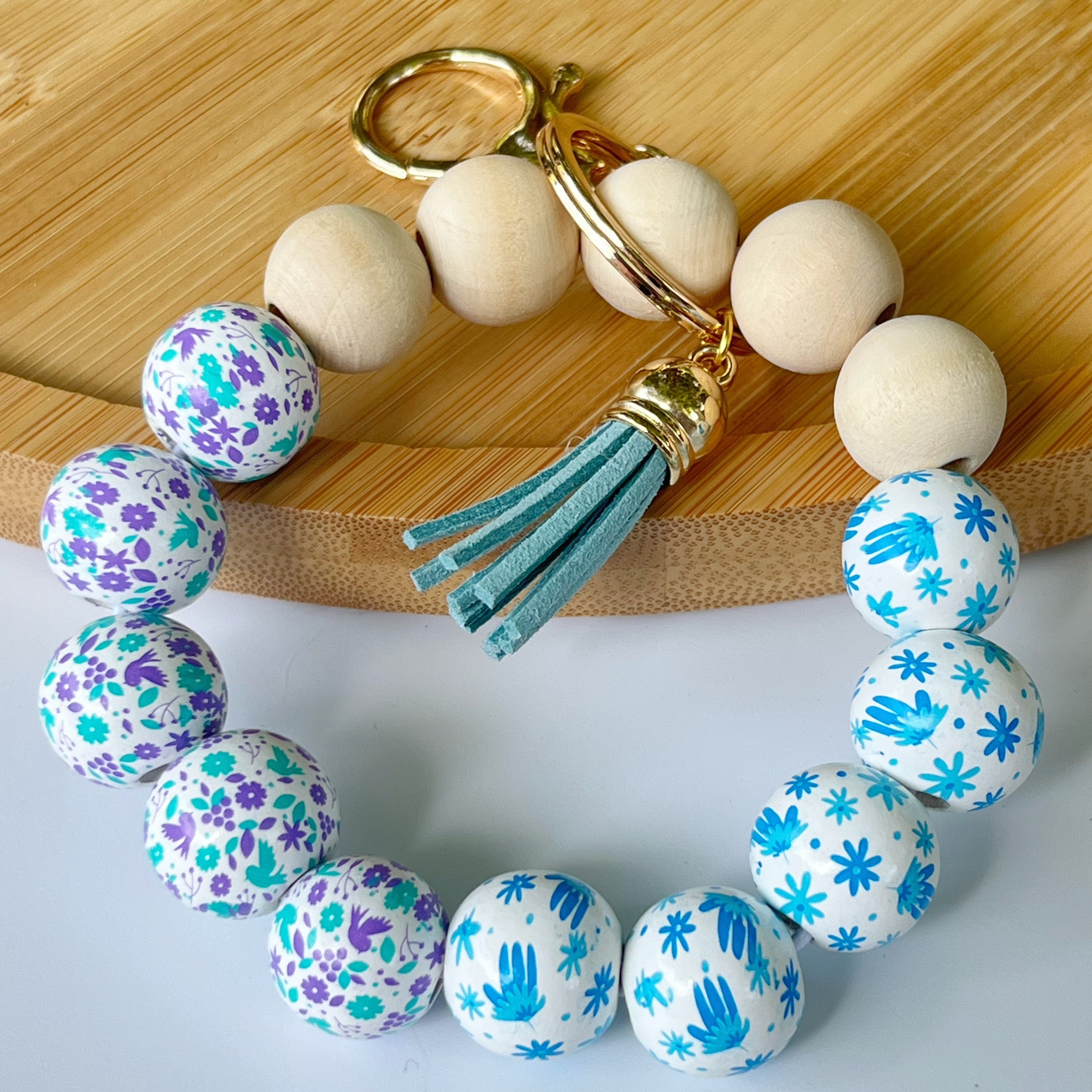 Summer Vacation-Inspired Floral Wooden Bead Keychain With Tassel Charm - Perfect For Car Keys, Backpacks & Wallets Cute Keychains For Women Cute Keychain Accessories
