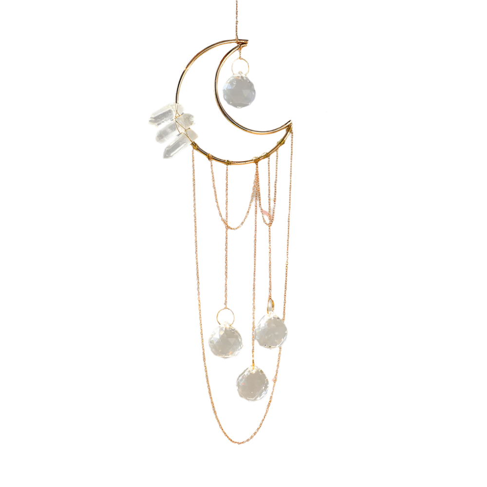 Hemasa Sun Catcher Rainbow Prism Moon Crystal Stained Glass Suncatcher Healing Crystals Stone Suncatchers Garden Home Moon Ornaments