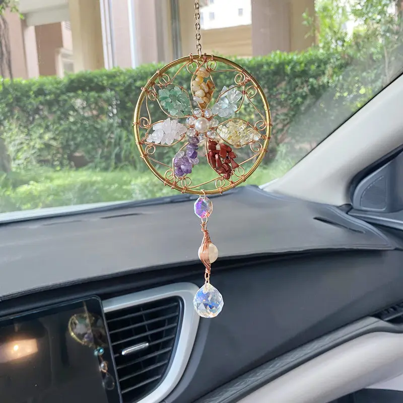 Beautiful crystal and natural stones suncatcher hanging ornament for car