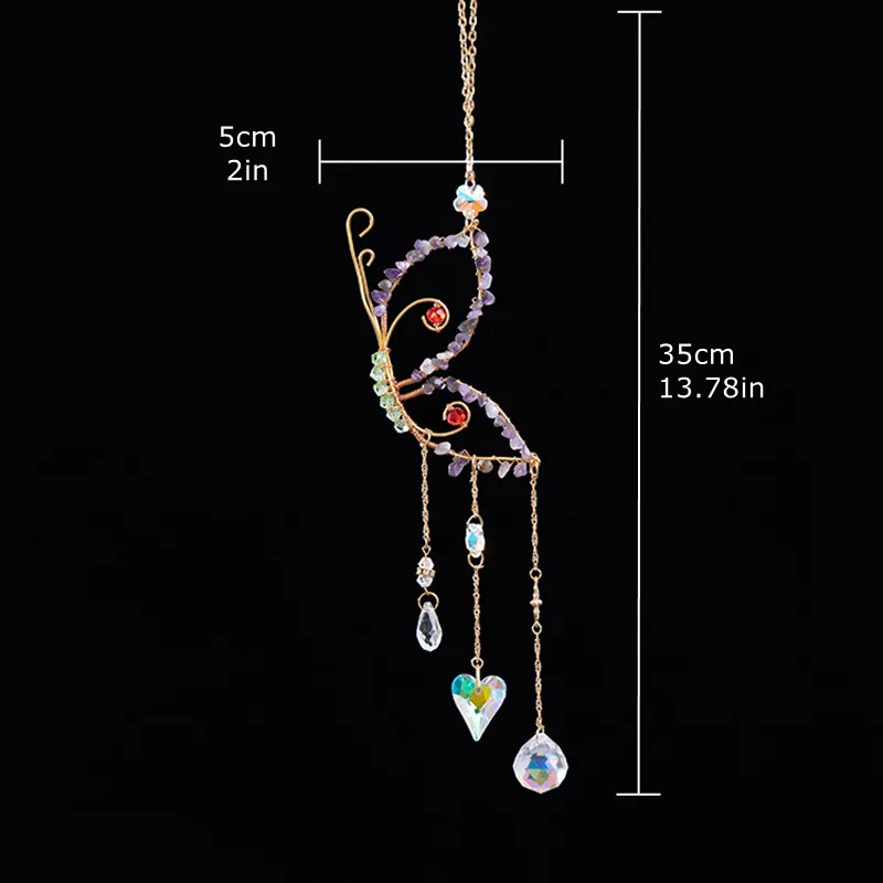 Suncatcher Crystal Hanging Car Ornament Handcraft Natural Raw Gemstone Flower Bird Butterfly Sun Catcher Home Decor Accessories
