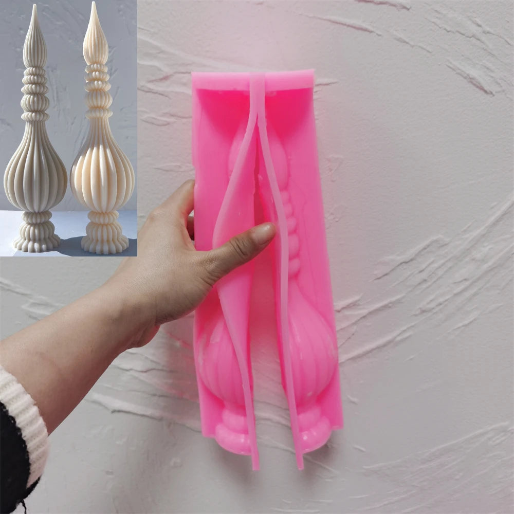 Tall Ribbed Pillar Candle Molds Taper Spiral Silicone Mould Geometric Abstract Decorative Soy Wax Mold