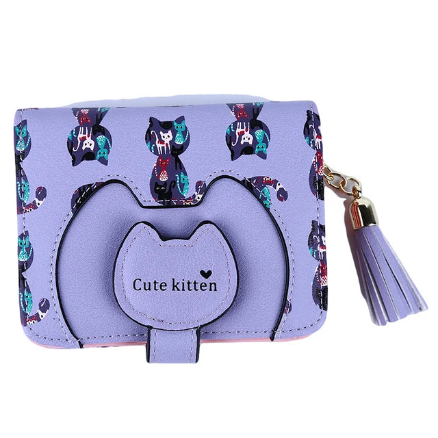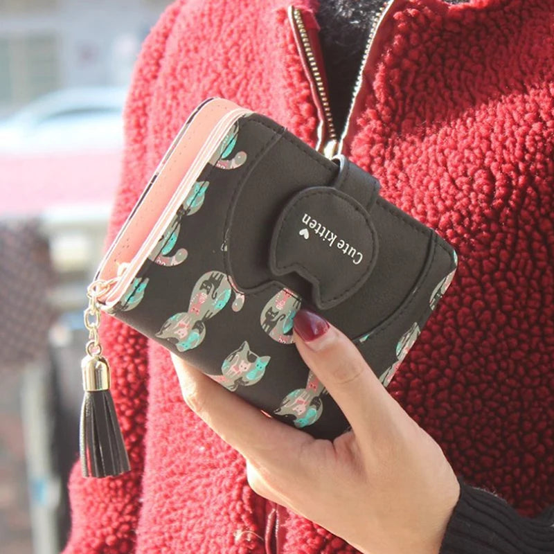 Tassel Cartoon Cat Women Wallet Printing PU Leather Women Wallet Brand Designed Coin Purse Female Card Holder Cute Girl Wallet
