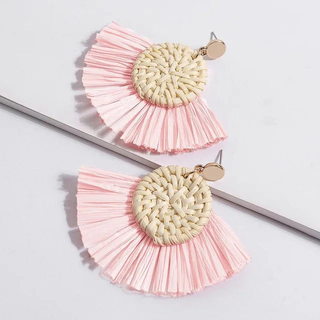 Tassel Earrings Bohemian Statement Drop Lafite Earring for Women Raffia Straw Handmade Earring Pendientes Mujer Moda 2023 Brinco