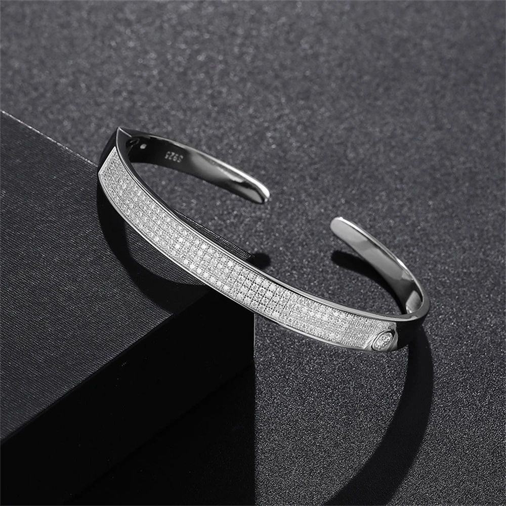 TBCYD Real Moissanite Cuff Bracelet For Men Women 925 Sterling Silver Diamond Open Bangle Trendy Fashion Hand Chain Fine Jewelry