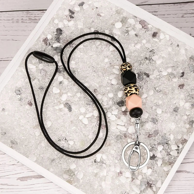 [Durable and easy to use] The polyamide fibre rope and metal lanyard clip and keyring make the lanyard extremely durable, it is well made and easy to use, you can wear and remove the lanyard without opening the clasp because of the long rope. And you can adjust the length easily with a pair of scissors.[Confortable beads] The silicone beads are perfect size and they have that soft feel! It's super , your neck will never got tired, wouldn't clash your colthes and hair, you can clean it without it fading with wipes.[Cute and stylish] The cute beads comes with different colors, different shapes and nice textures, does with so many outfits, very versatile and can be worn with a of colors.[Suitable ] If you are a teacher, an office worker or a nurse, I will definitely recommend this cute lanyard, it can carry your ID badge and keys, It's cute, confortable and versatile, great for classroom and office.