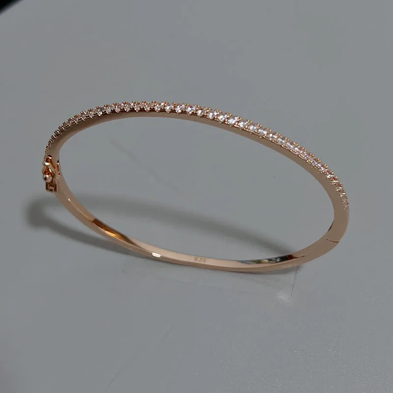 Top Quality Fashion Lovely Bangle Pure Sterling 925 Silver Jewelry For Women Design Bangle Cute Diamond Party Gift Jewelry Size6