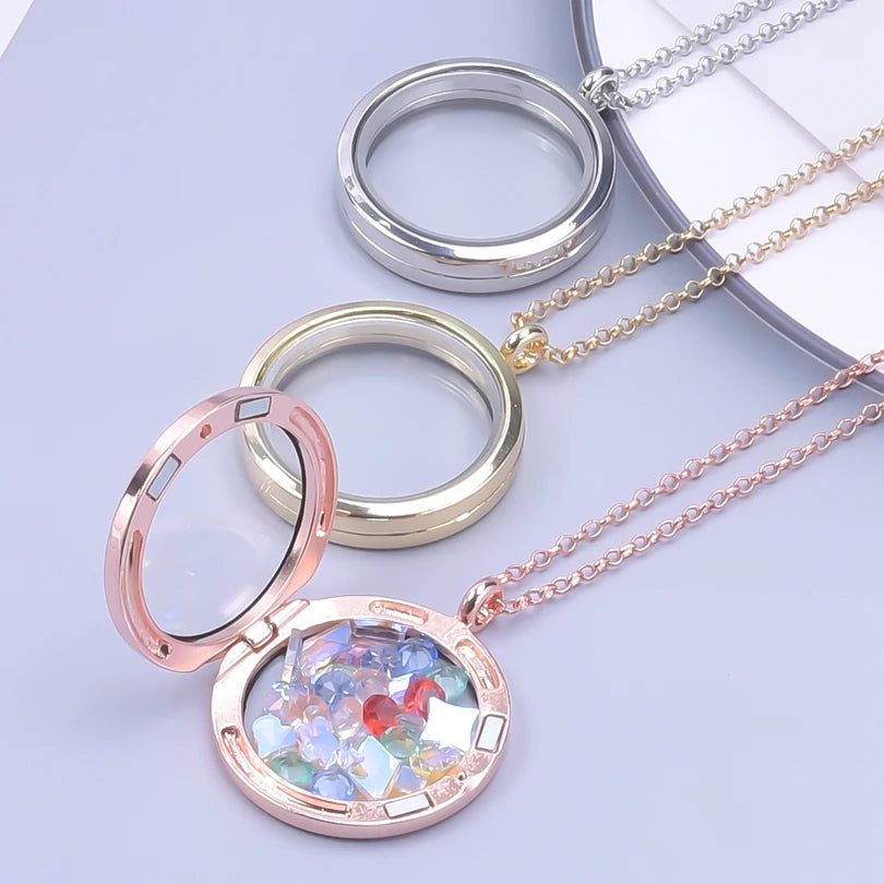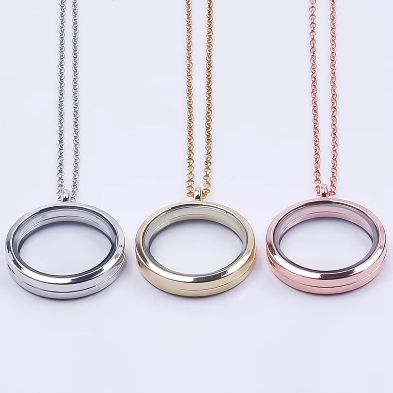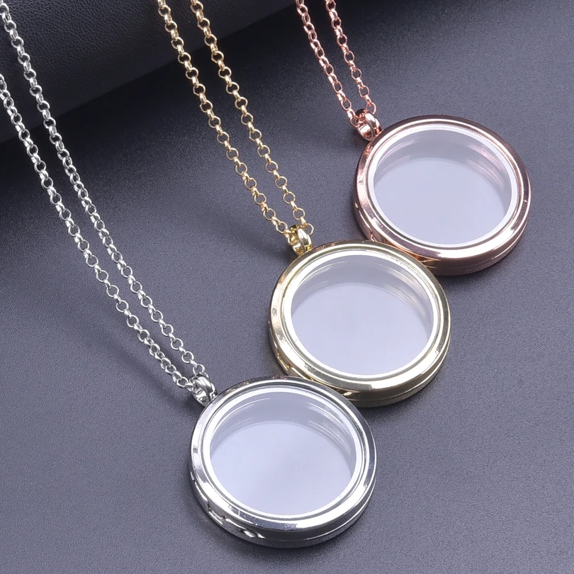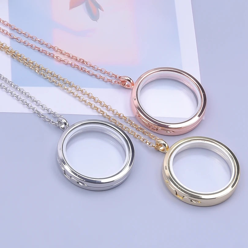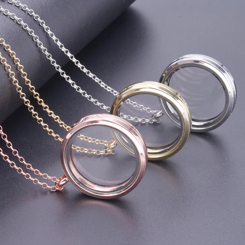 Trendy Necklace for Women Rose Gold Color Jewelry Medallion Relicario Photo Collars 60cm O-shape Chains Glass Floating Locket