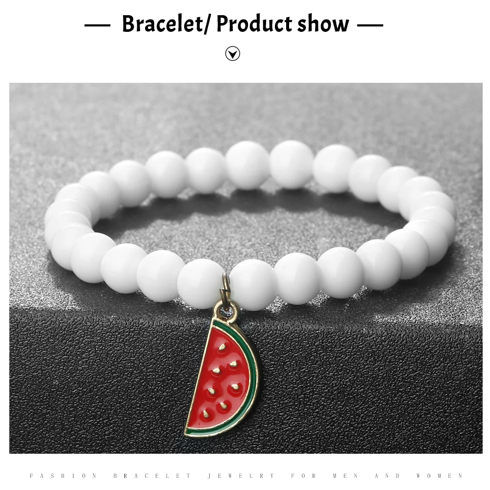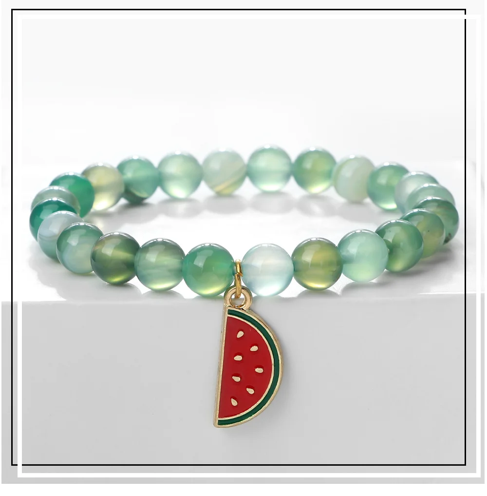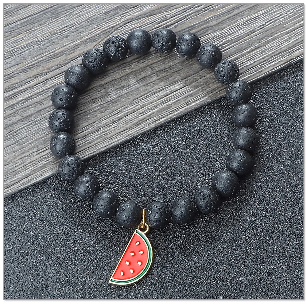 Trendy Watermelon Couple Beaded Bracelet Natural 8mm Lava Stone Agate Fruit Bangle For Women Men Healing Elastic Pulsera Jewelry